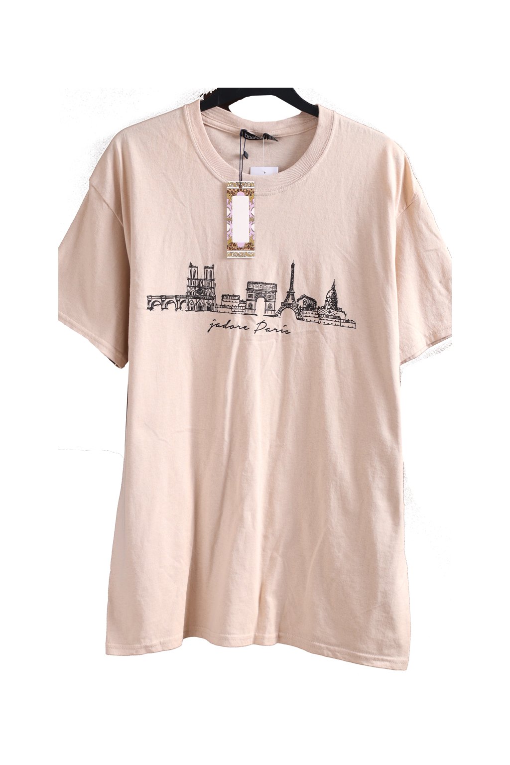 Dámské béžové triko s francouzským vzorem / BOOHOO / XXL (46) / UK 18 / ANGLIE