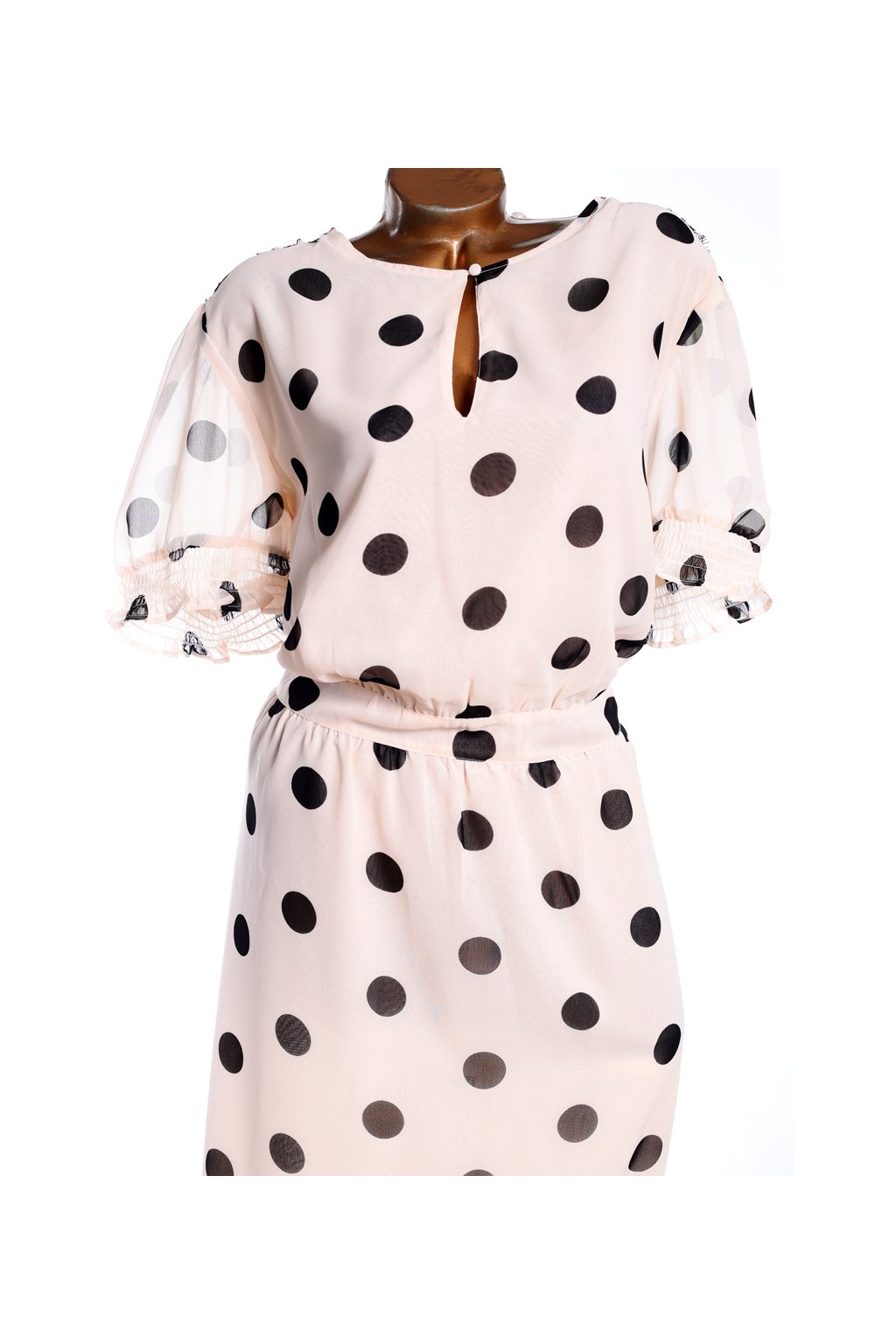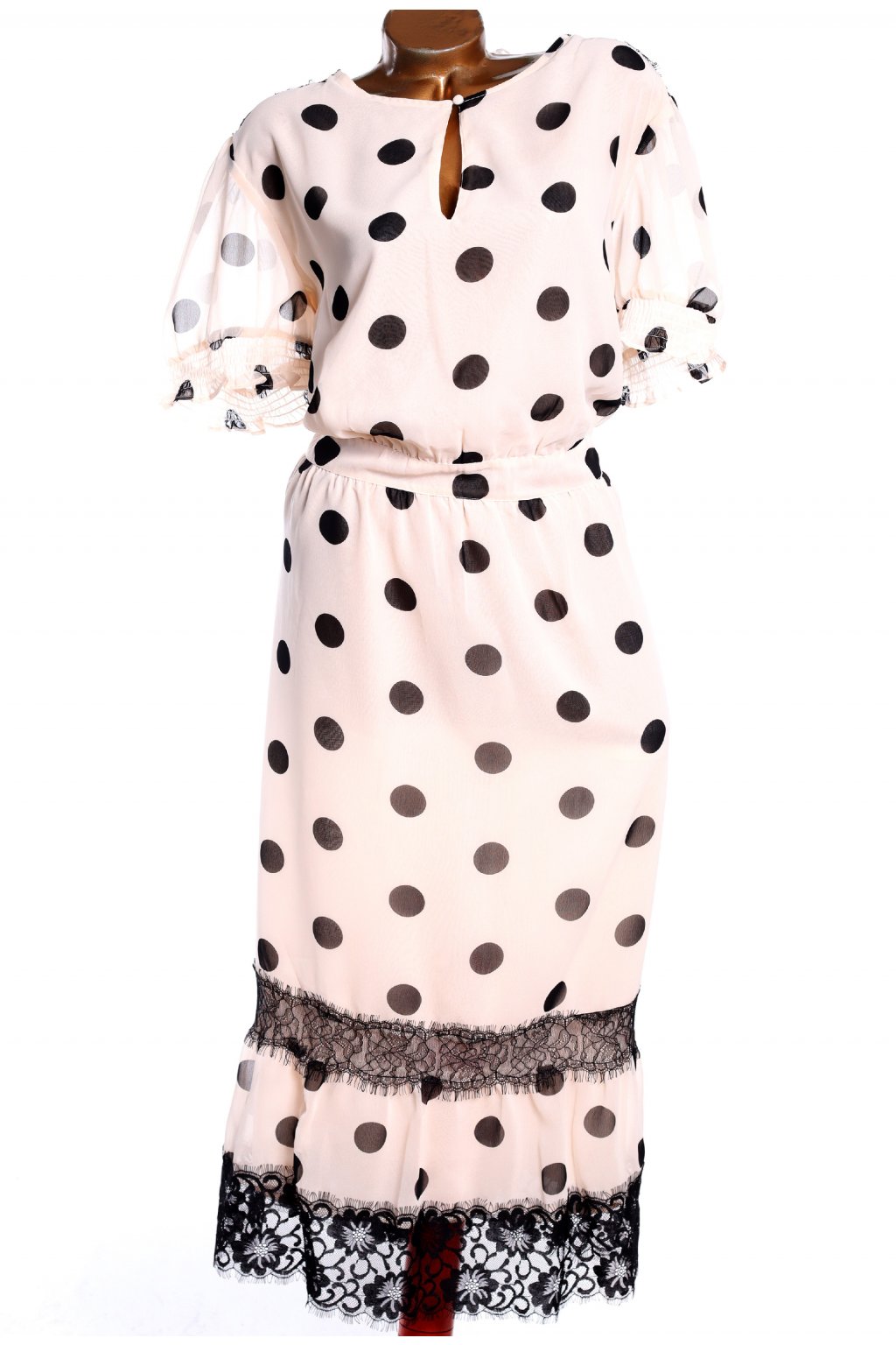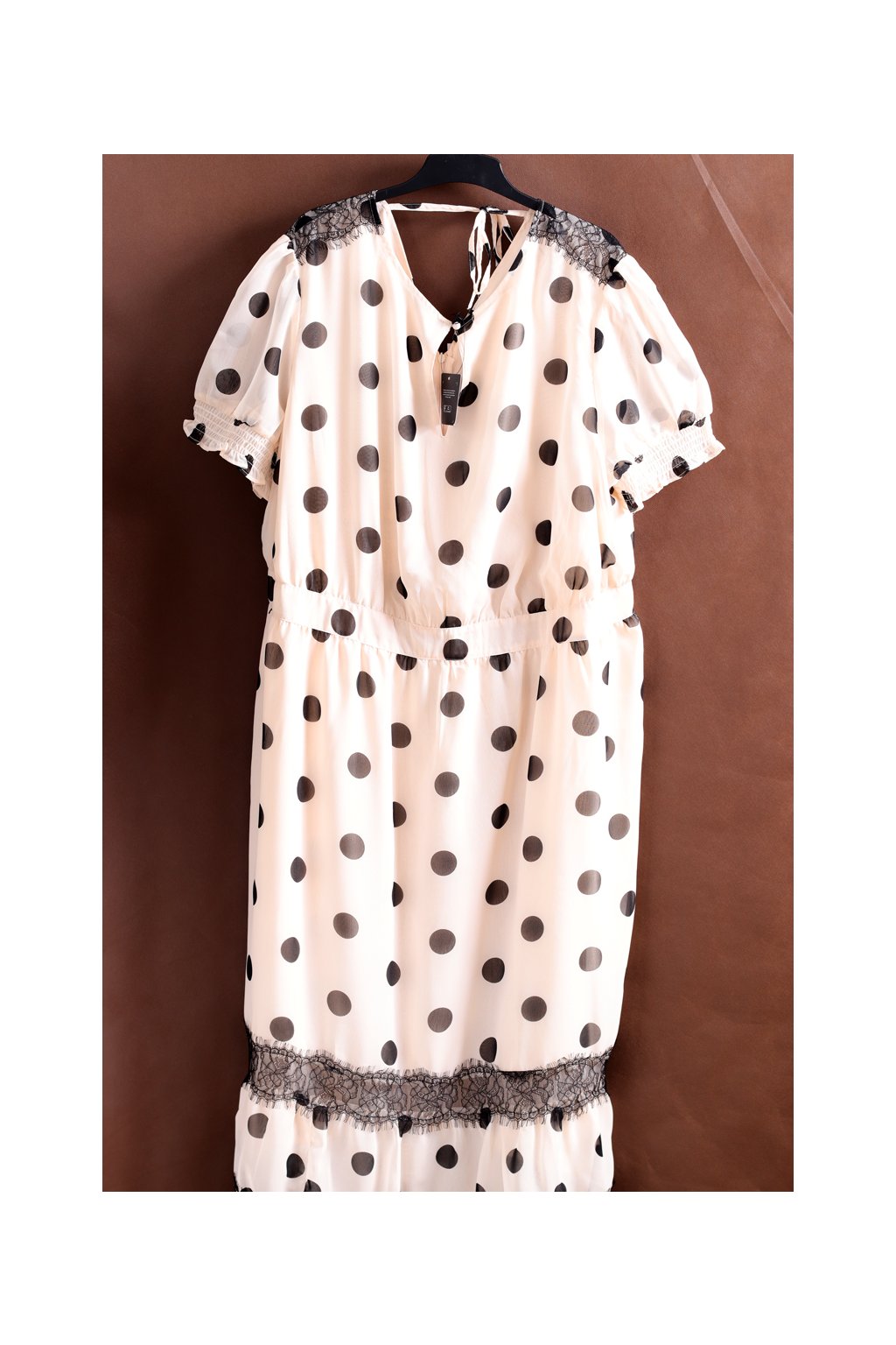 Dámské béžové značkové šaty s černými puntíky / J.D. WILLIAMS / XXXXL+ (58) / UK 30 / ANGLIE