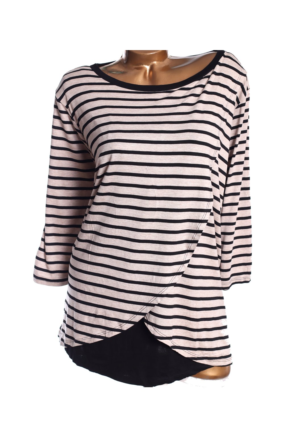 Dámské béžovo-černé pruhované triko/ BRING IT UP / XXXXL (50/52) / UK 22/24 / ANGLIE