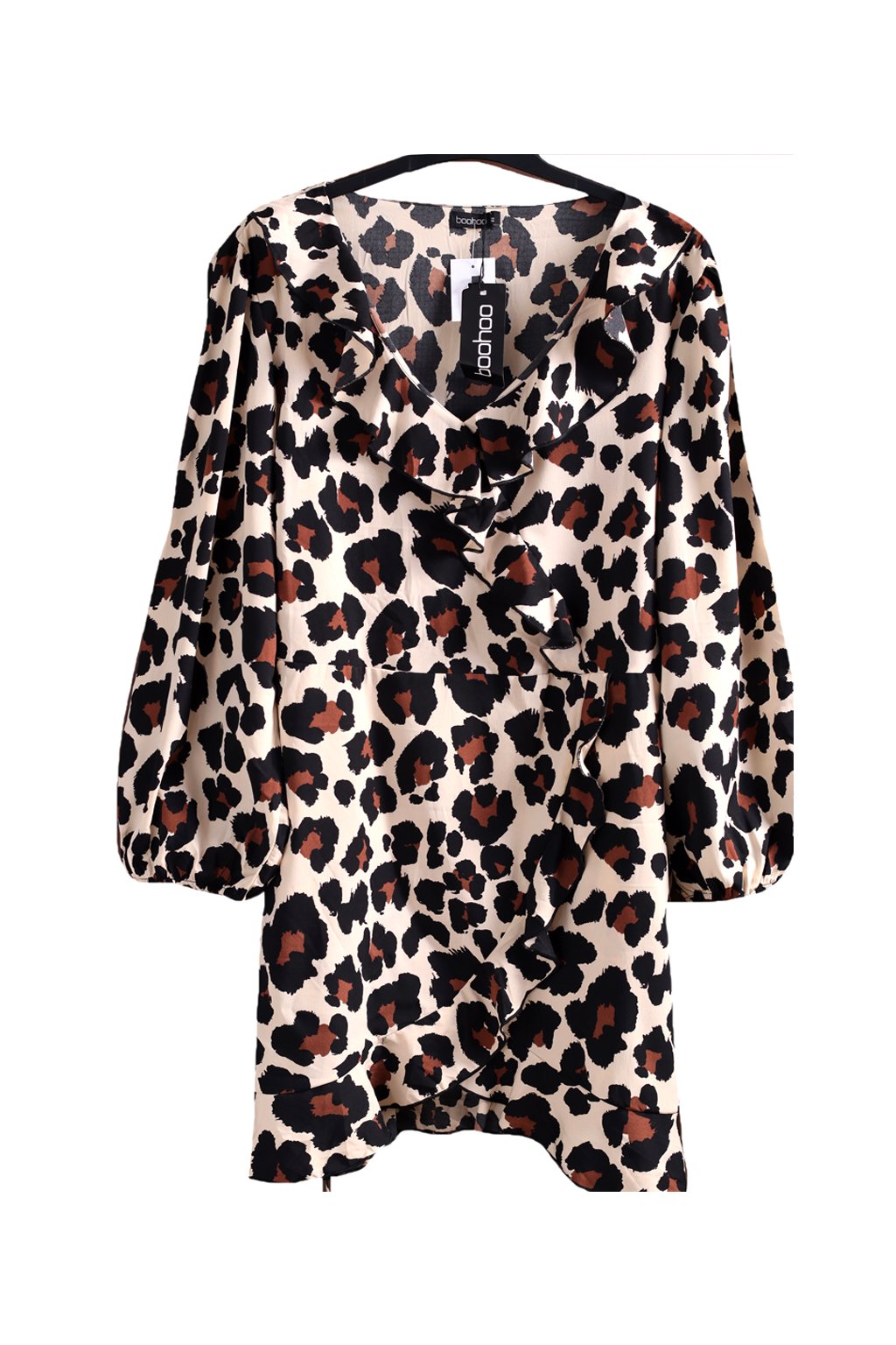 Dámské béžovo-černo-hnědé leopardí šaty / BOOHOO / XXXL (46/48) / UK 20 / ANGLIE