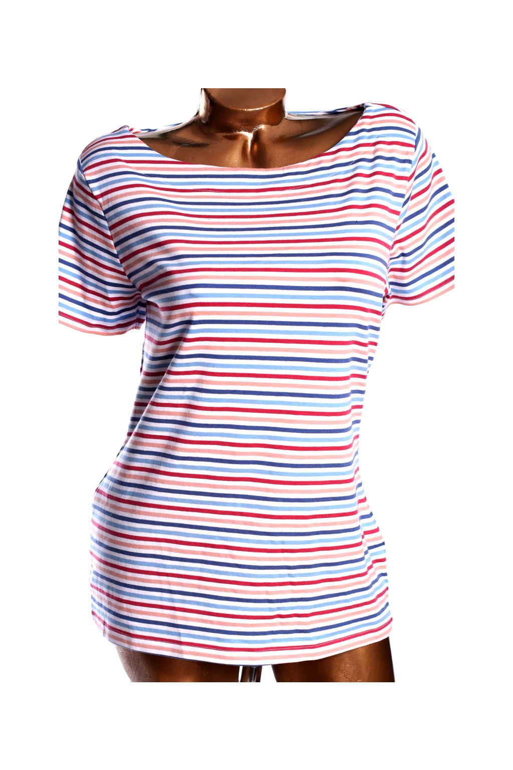 Dámské bílé barevně pruhované triko / NUTMEG/ XXL (44/46) / UK 16 / ANGLIE