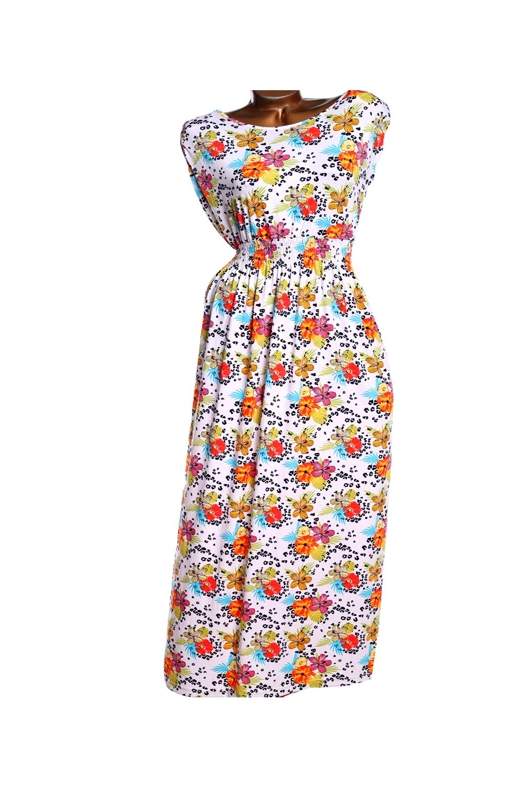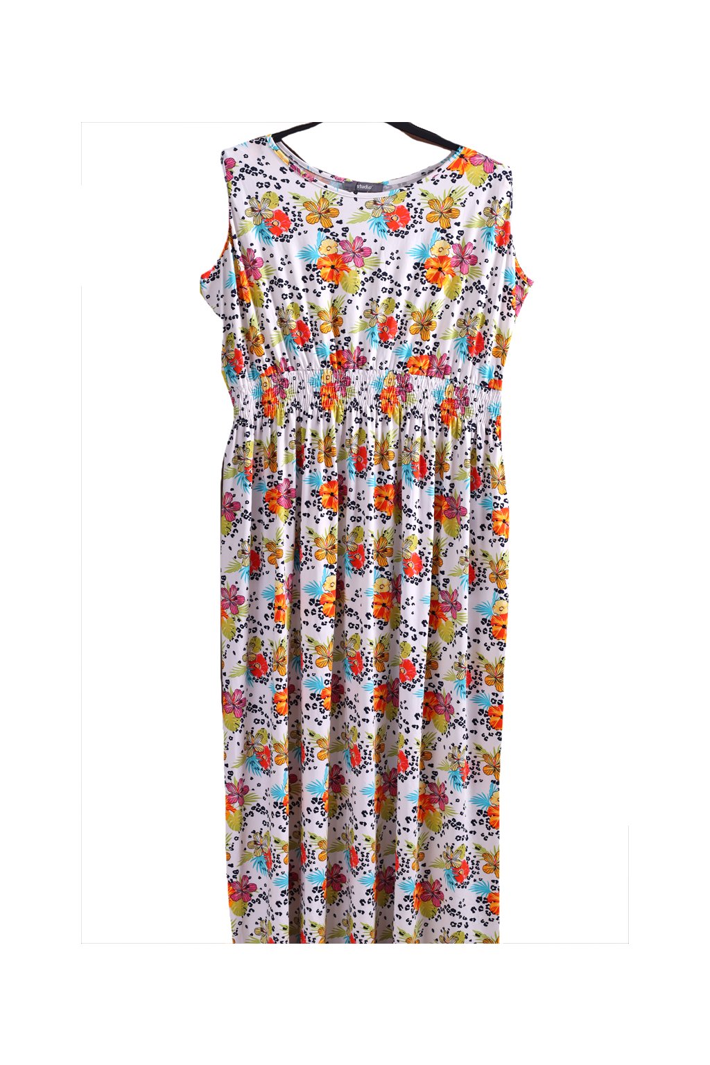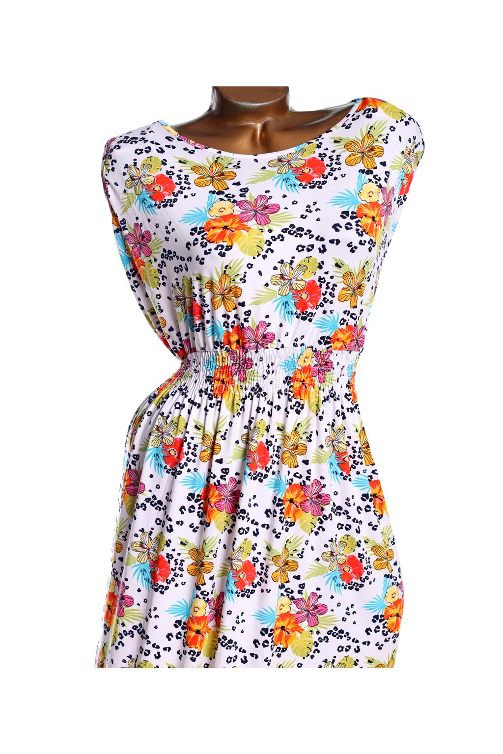 Dámské bílé elastické šaty s bílými květy / STUDIO/ XXXXL (52/54) / UK 24/26 / ANGLIE