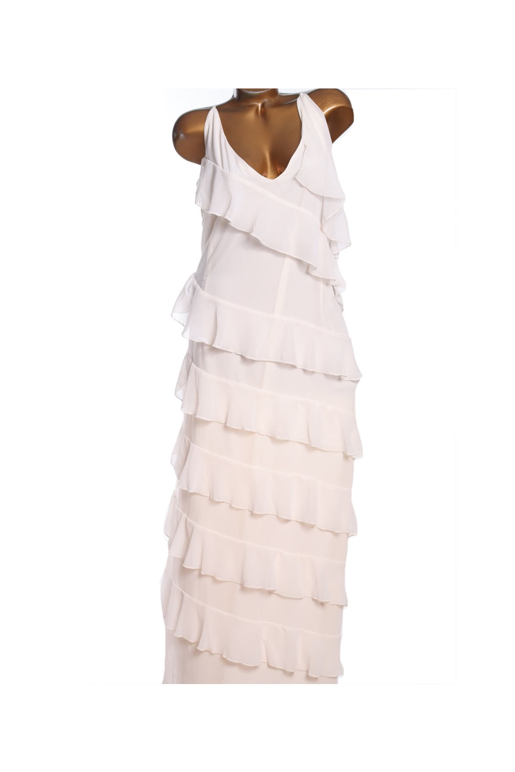 Míry: délka – 153 cm (nastavitelná ramínka), prsa- 134-144cm, pas- 134-144 cm, spodní lem - volný