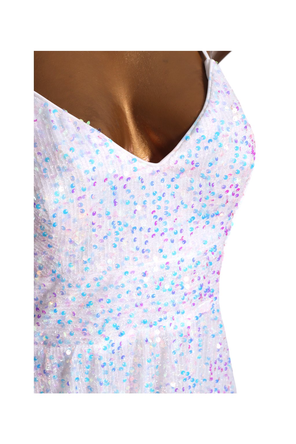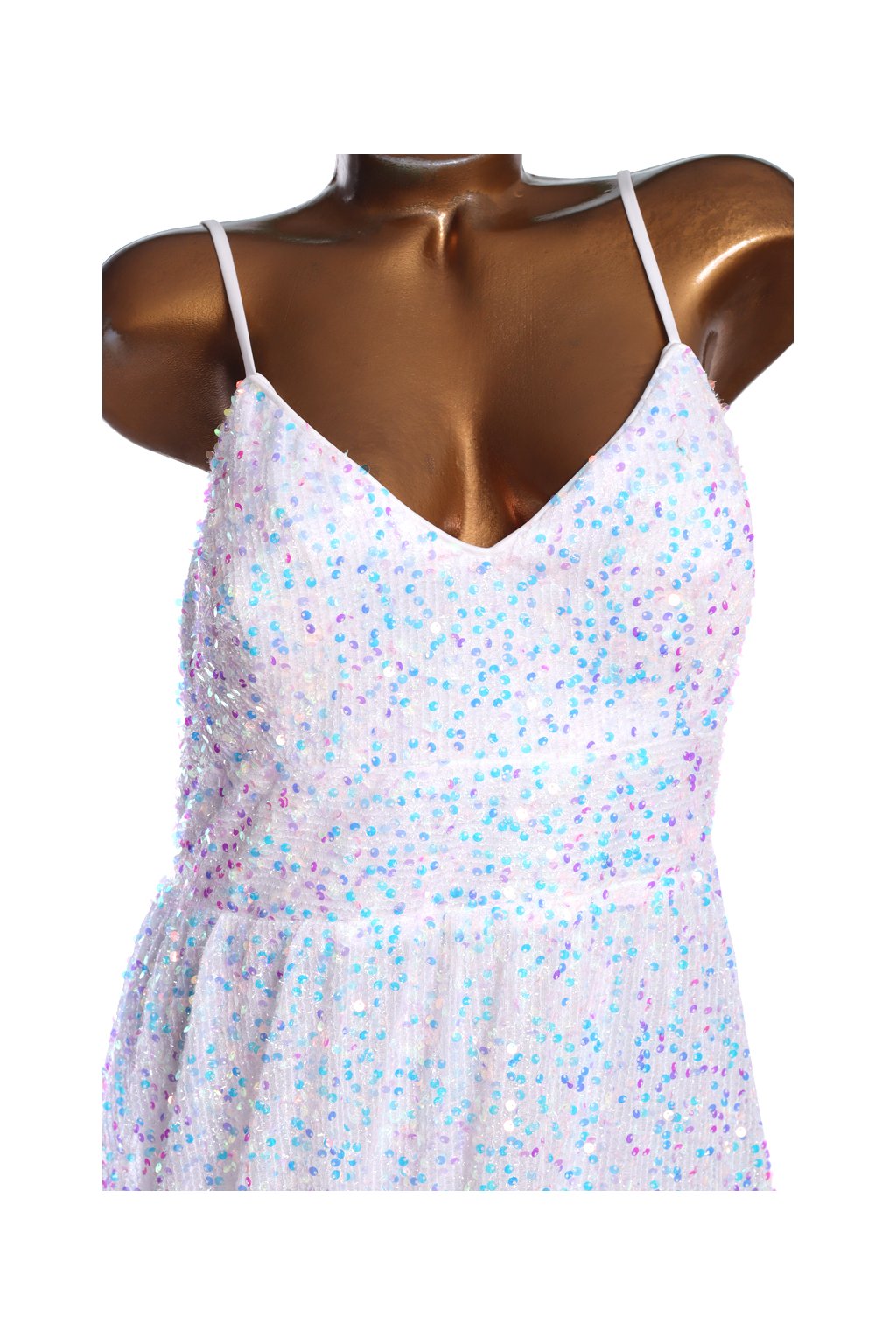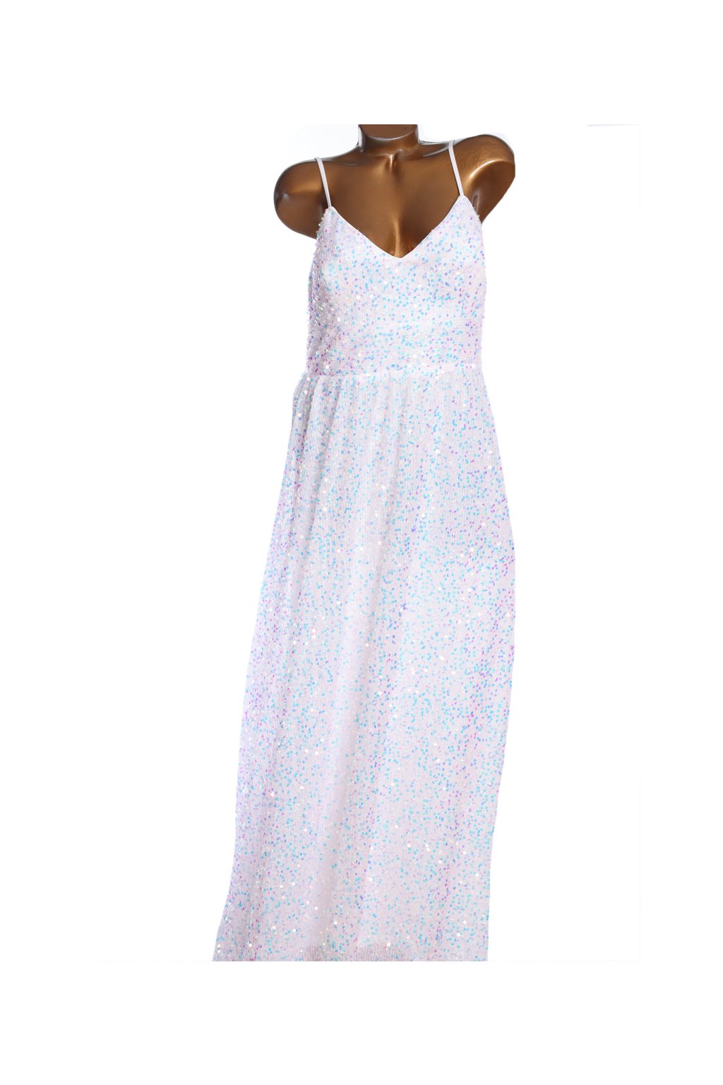 Dámské bílé šaty s barevnými flitry / GIFFNISETI / XXL (46/48)/ UK 18/20 / ANGLIE