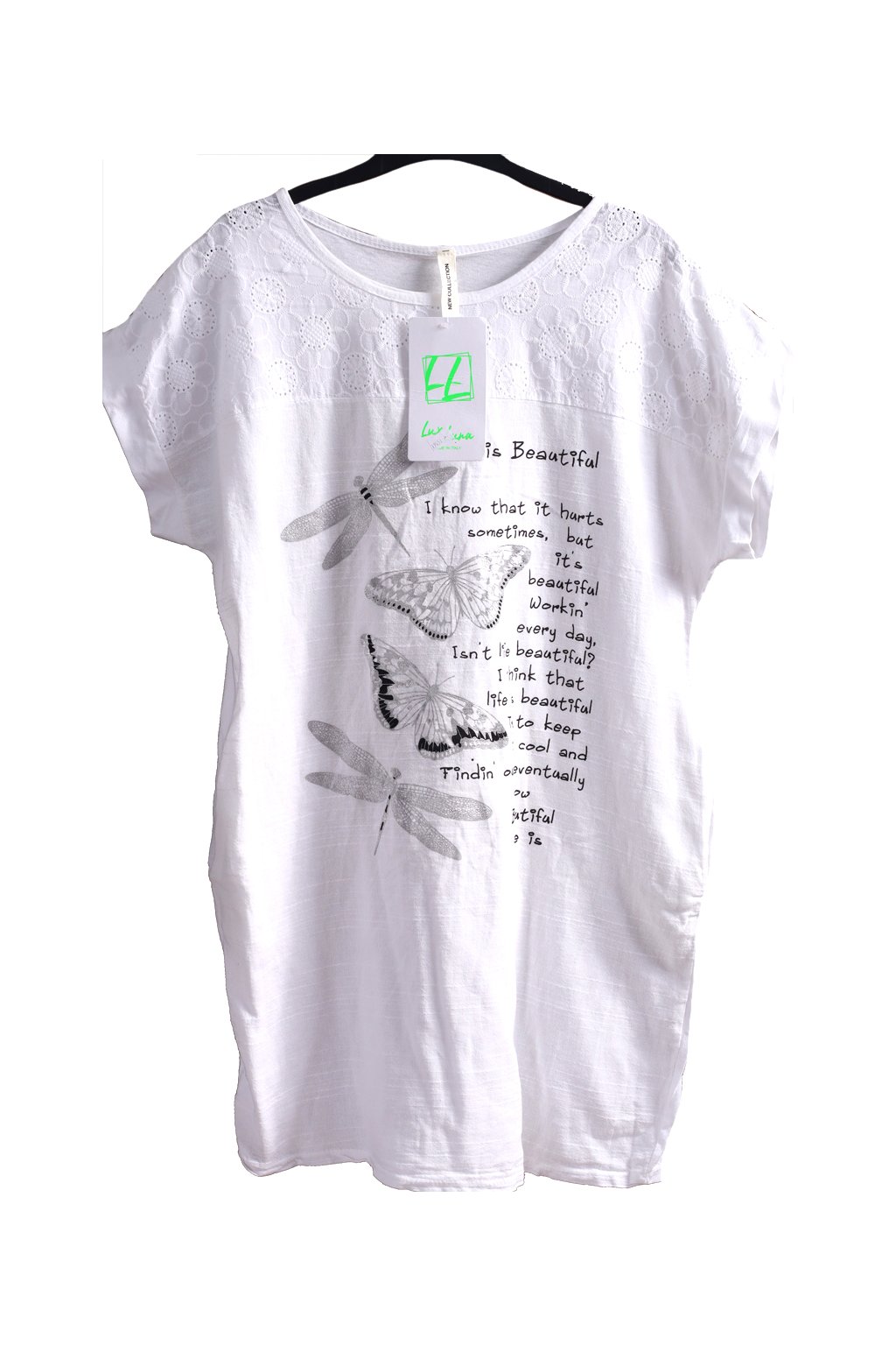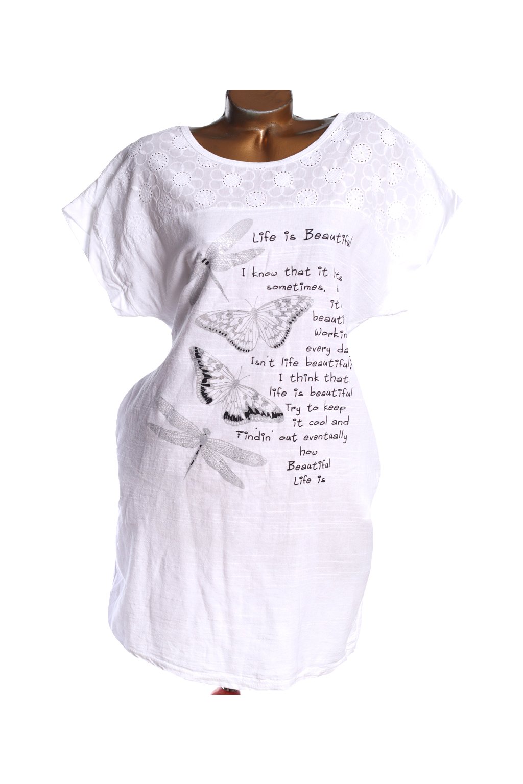 Dámské bílé šaty s černým nápisem a vážkami / New collection / XXXL (44/46)/ ZK 16/18 ANGLIE
