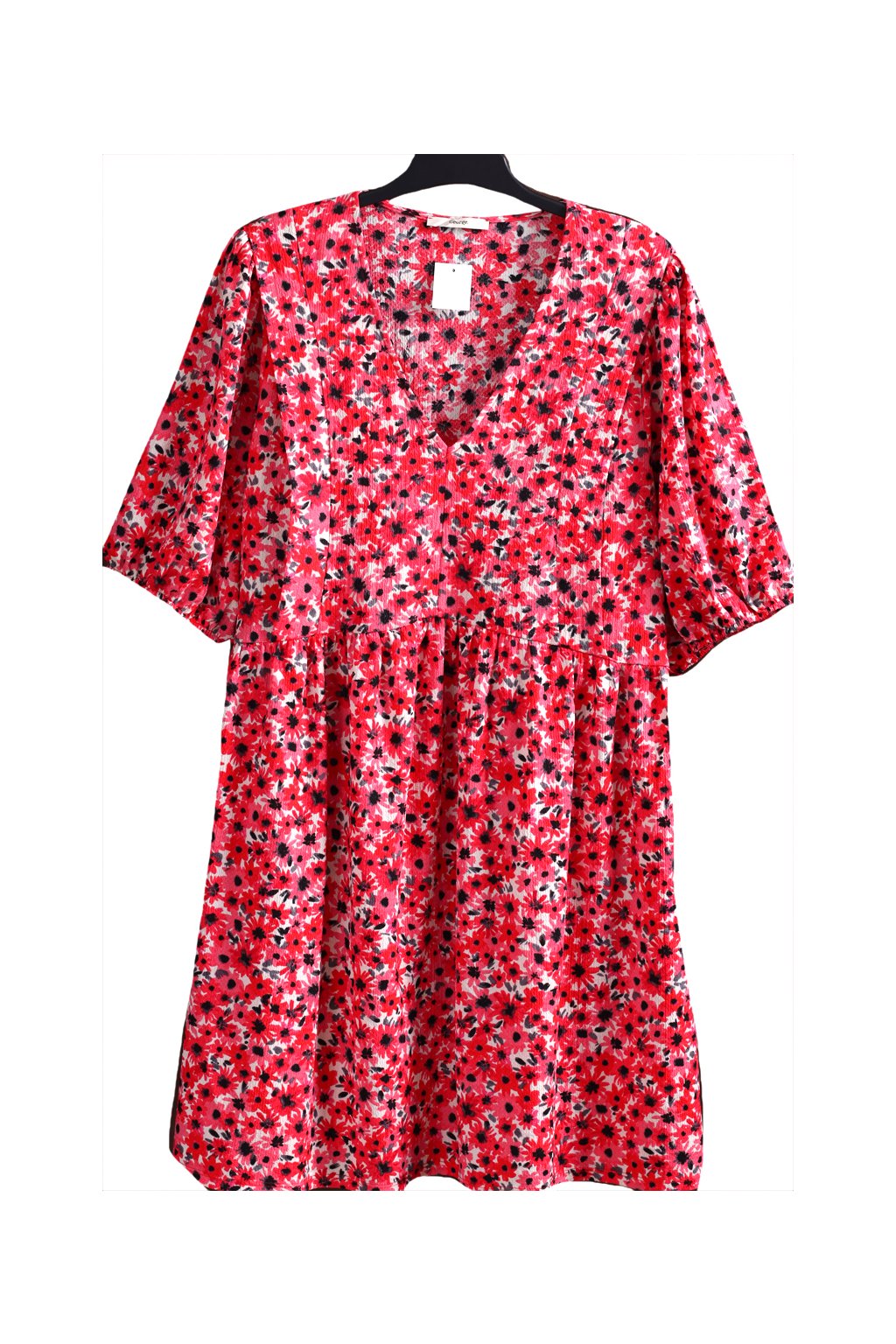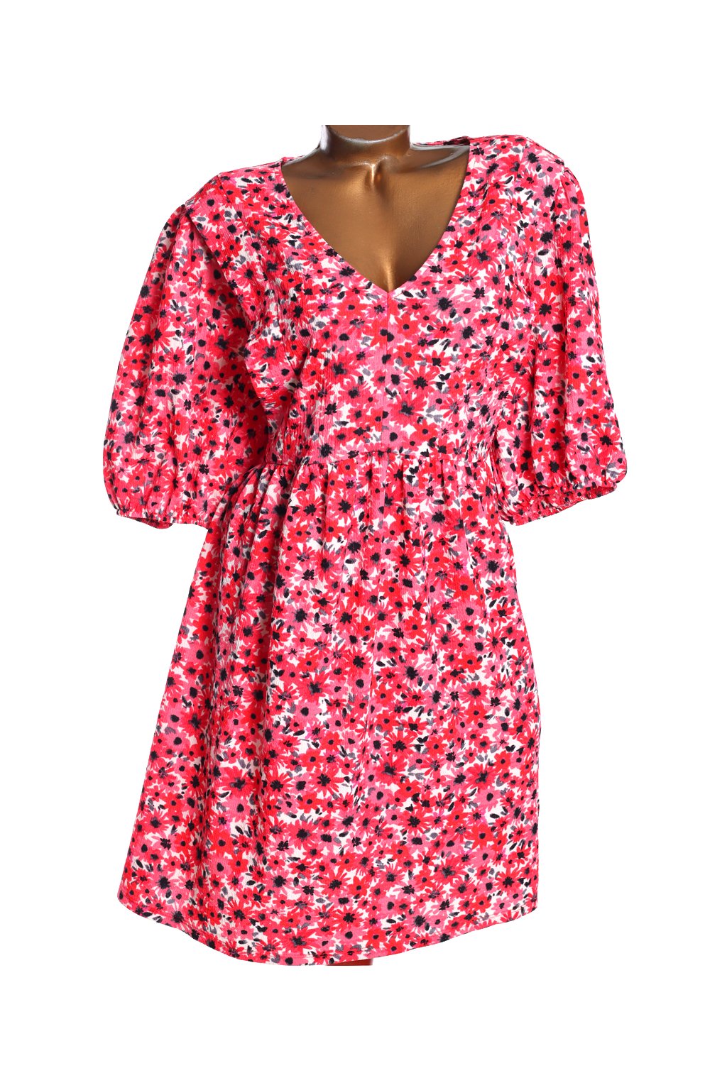 Dámské bílé šaty s červeno-růžovými květy / GEORGE / XXXL (50) / UK 22 / ANGLIE