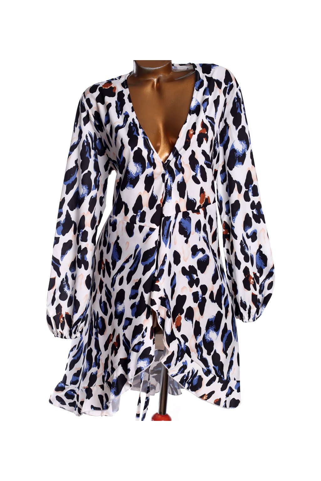 Dámské bílé šaty s leopardím barevným vzorem / XXXL (48) / UK 20 / ANGLIE