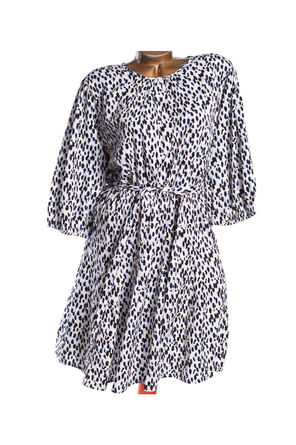 Dámské bílé šaty s modro-černými vzory / Influence / XXXL (50) / UK 22 / ANGLIE