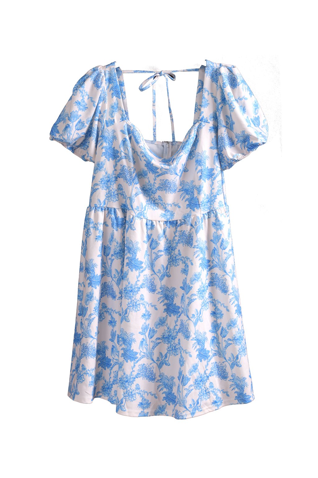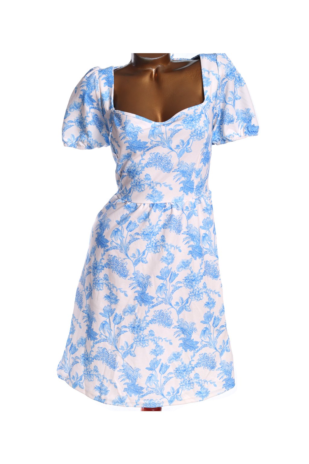 Dámské bílé šaty s modrými vzory / XXXXL (50/52) / UK 22/24 / ANGLIE