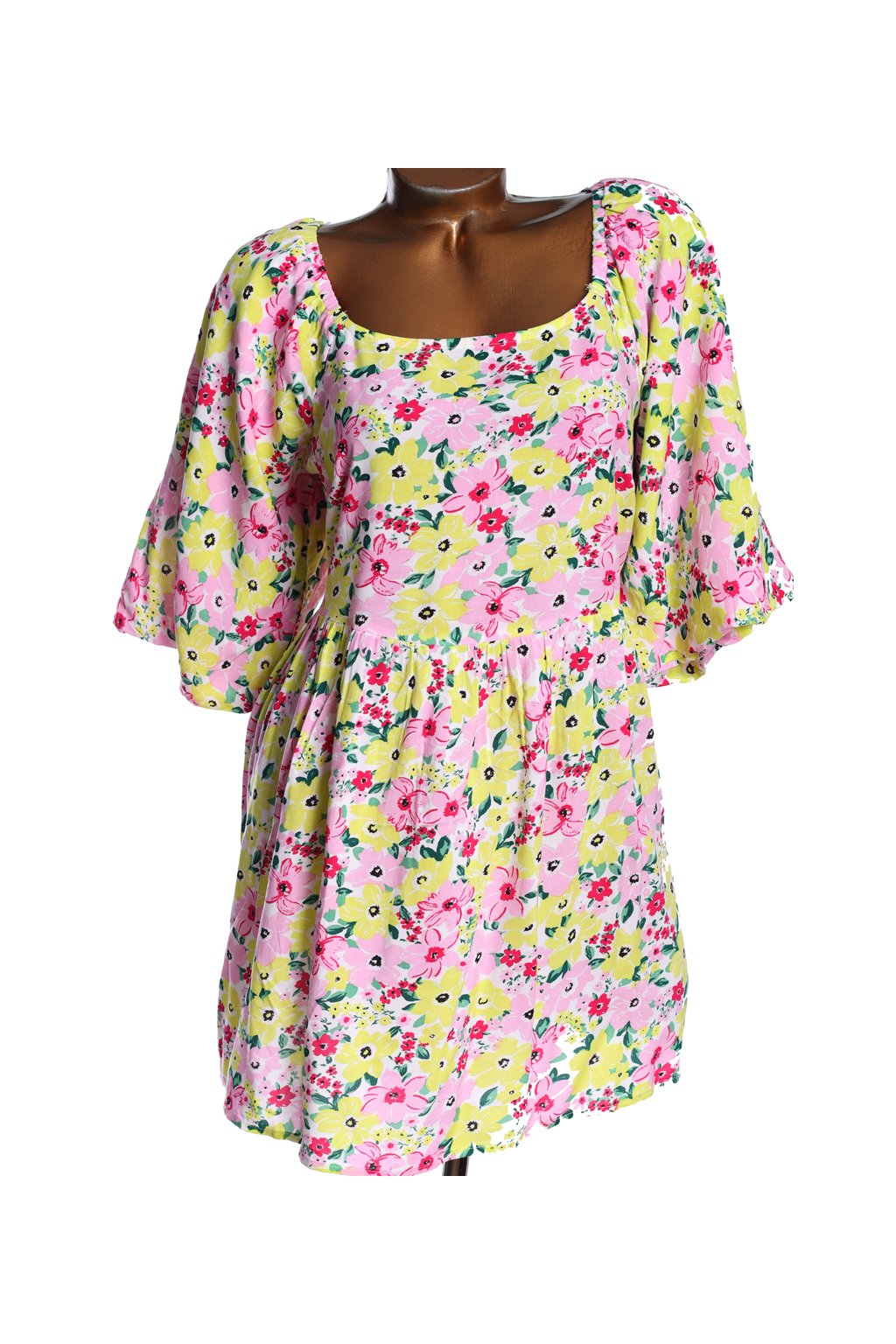 Dámské bílé šaty s růžovými a zelenými květinami / YOURS / XXXL (48) / UK 20 / ANGLIE