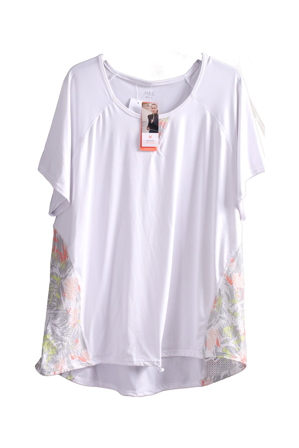 Dámské bílé sportovní triko s barevnými květy / Marks & Spencer / XXXXL (50) / UK 22 / ANGLIE