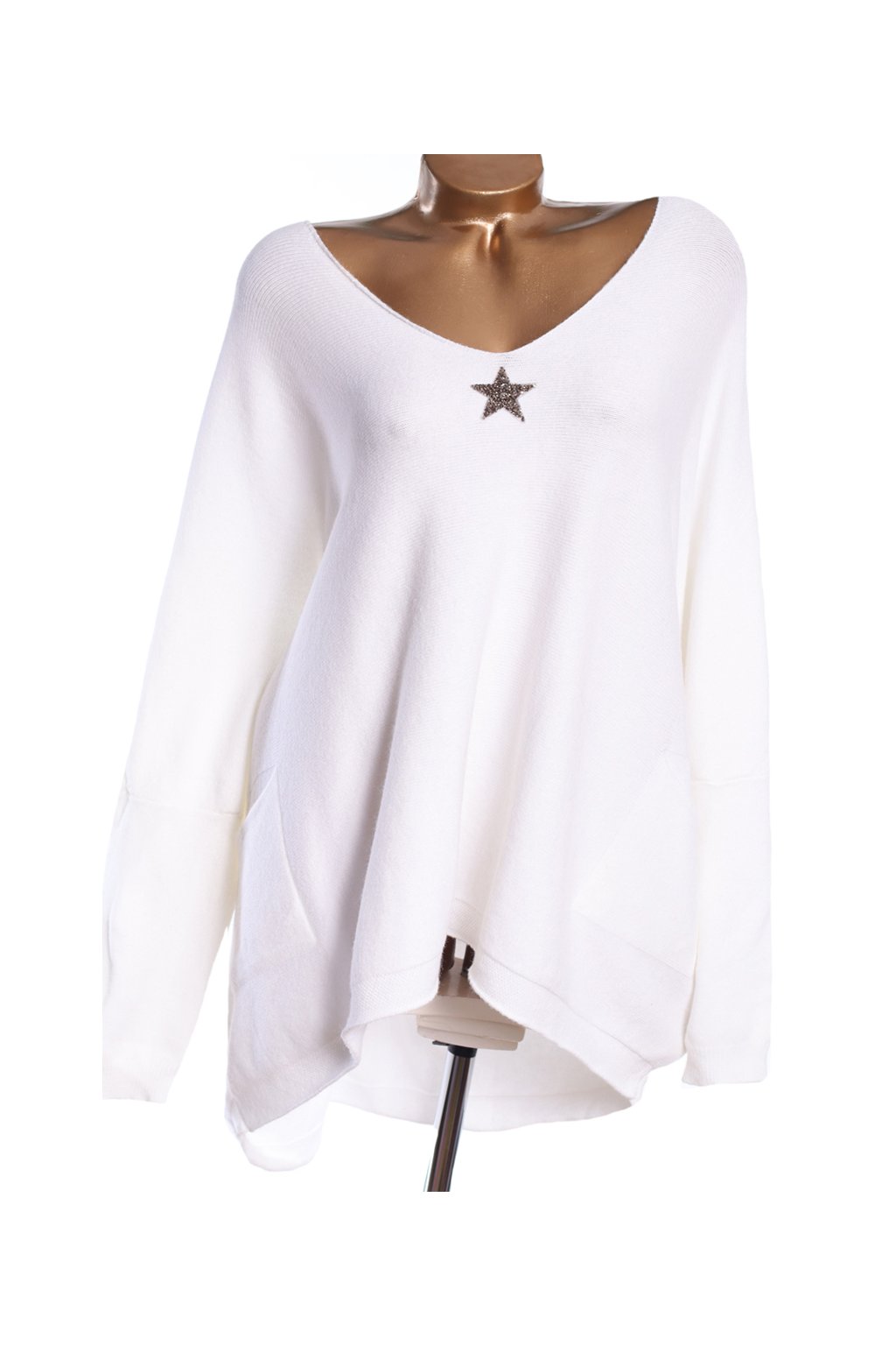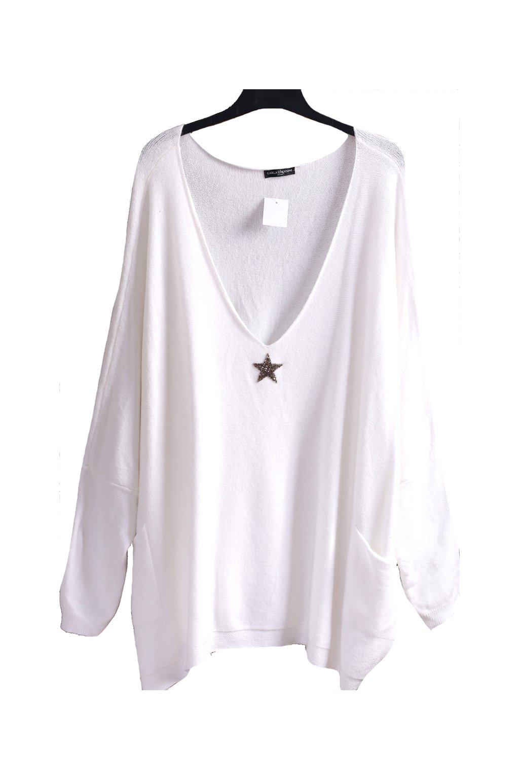 Dámské bílé svetrové šaty s hvězdou / CARLA GIANNINI / - OVERSIZE XXXXL (52) / UK 24 / ANGLIE