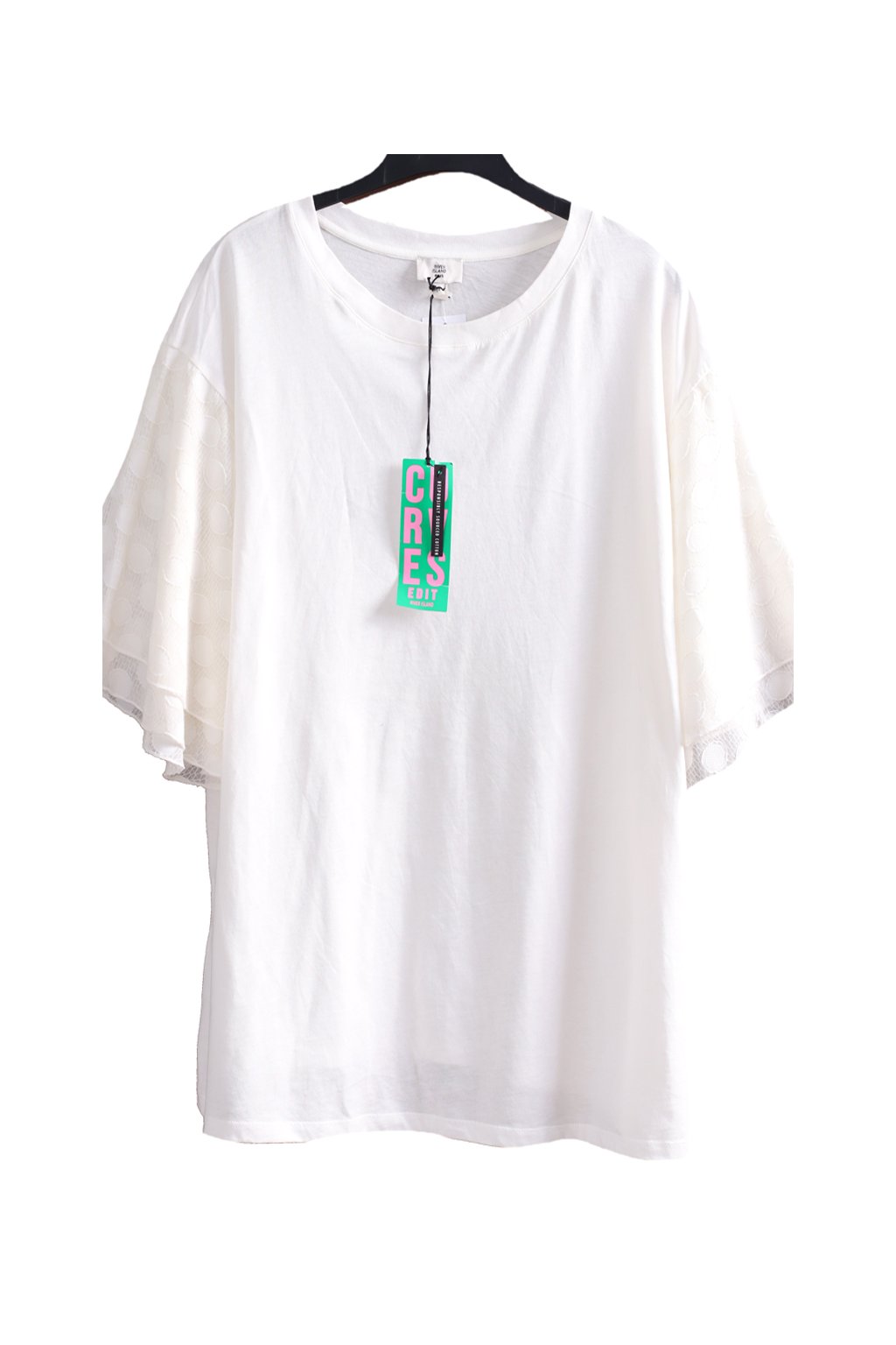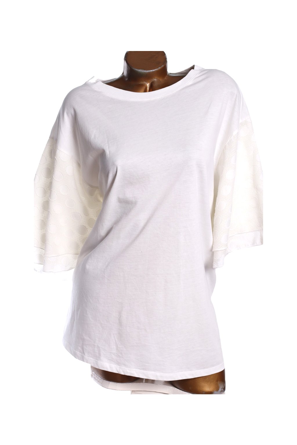 Dámské bílé triko s puntíkatými rukávy PC - 900,- / RIVER ISLAND/ XXXL (50/52) / UK 22/24 / ANGLIE