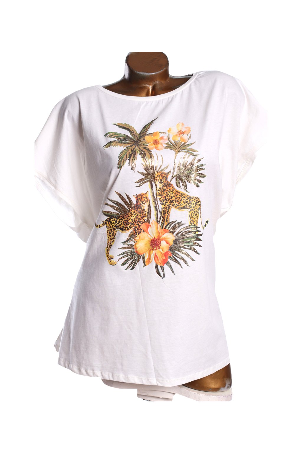 Dámské bílé triko se safari motivem / LOVE TEES / XXXXL (52) / UK 24 / ANGLIE