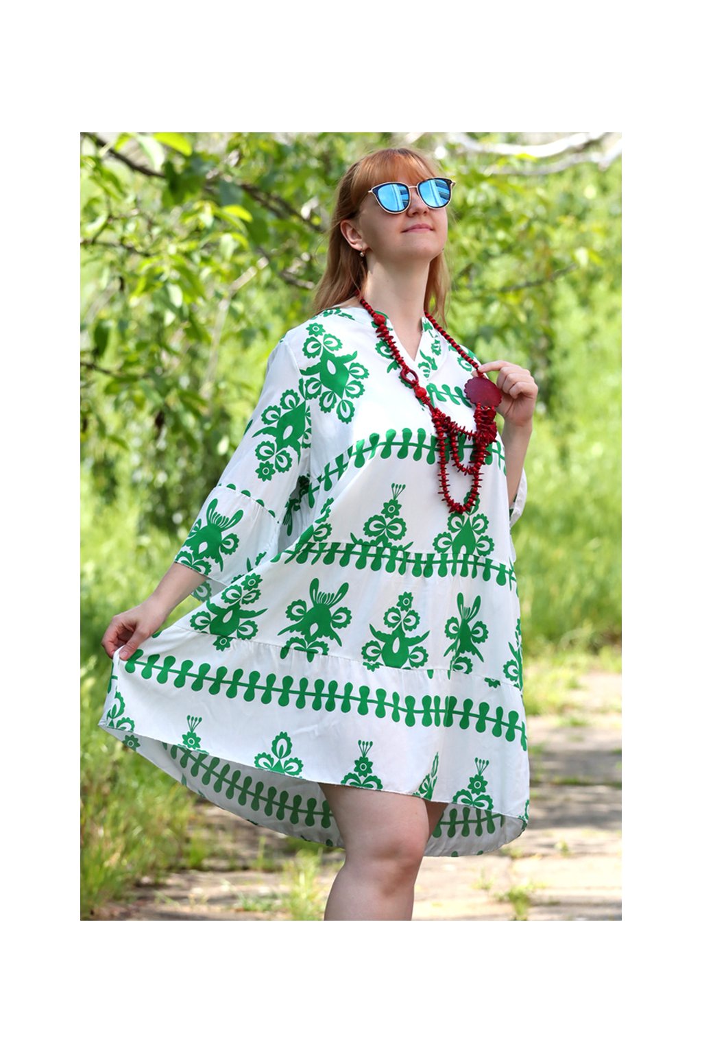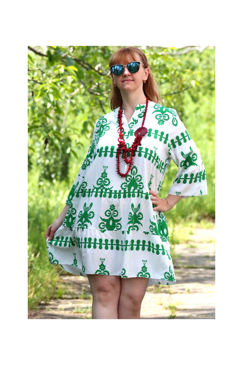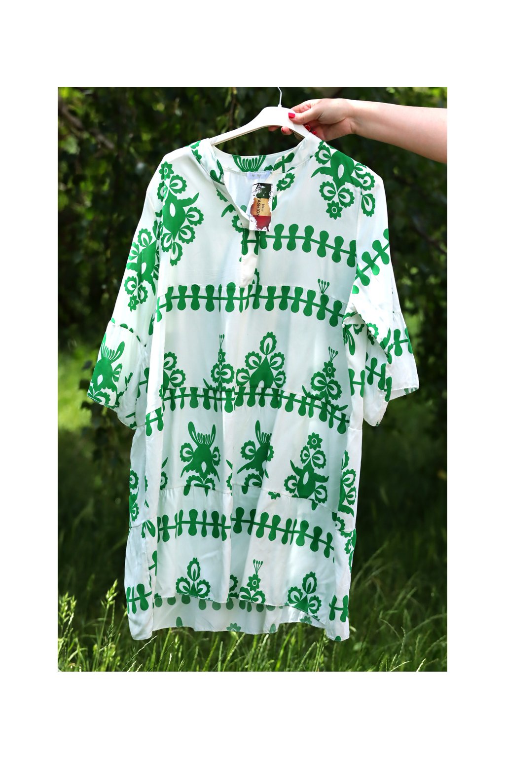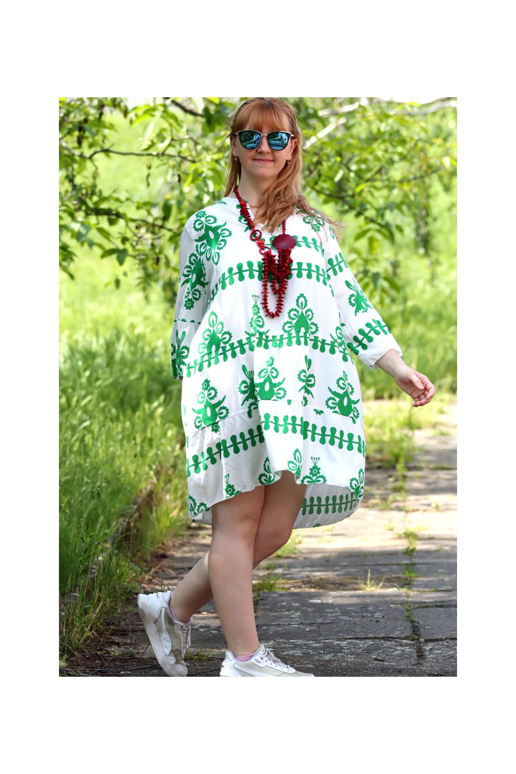 Dámské bílo-zelené šaty se vzory / NEW FASHION / XL-XXL (42/44/46) / prsa do 120 cm/ MODA ITALY