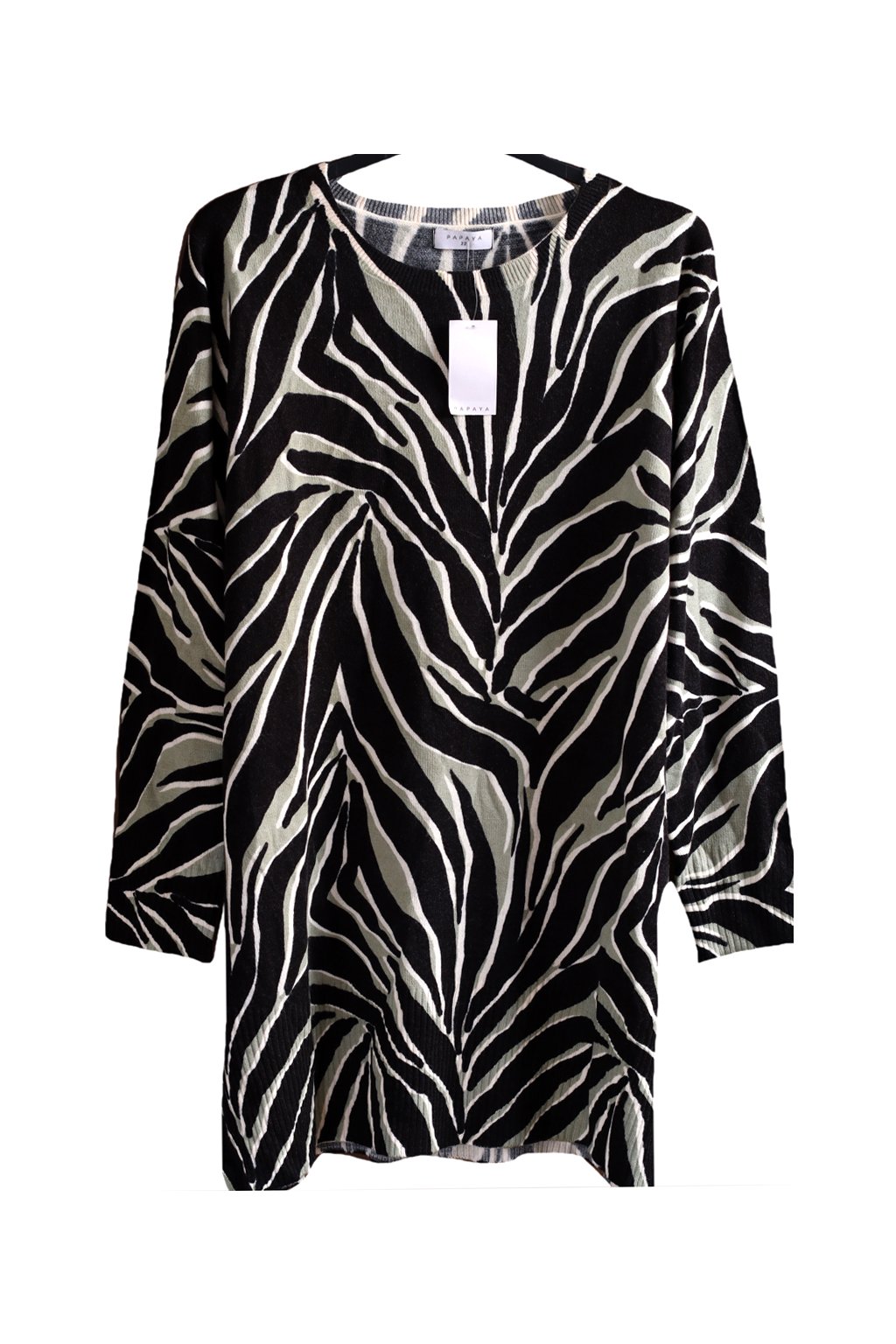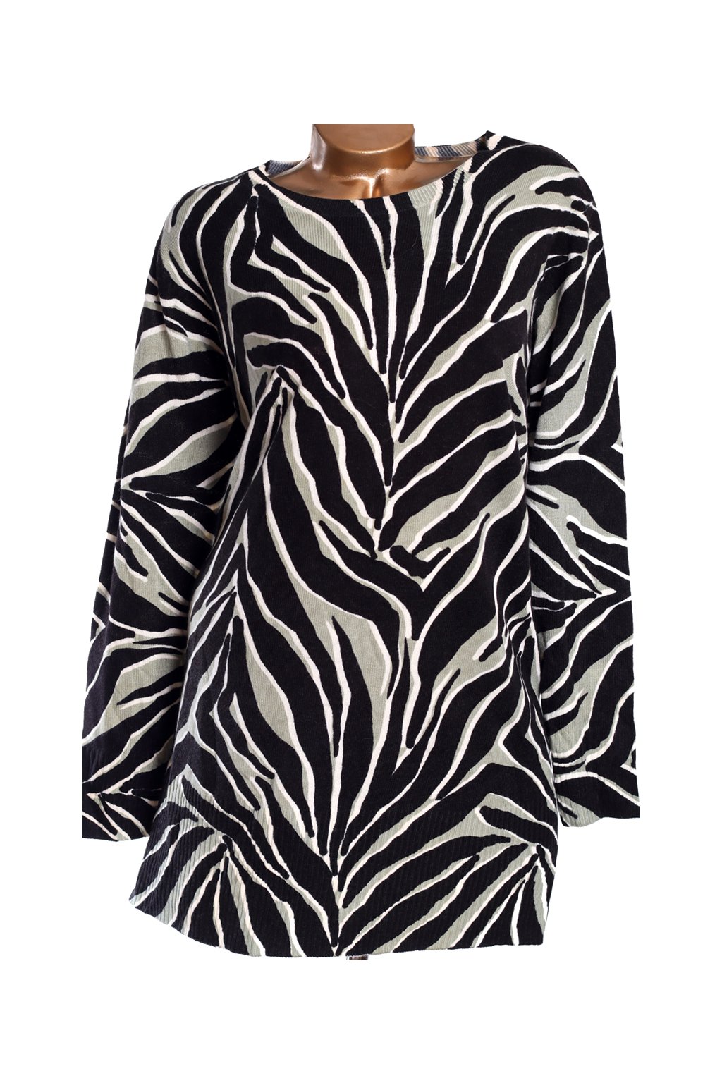 Dámské bílo-zeleno-černé vzorované svetr/svetrové šaty / PAPAYA / XXXXL (50) / UK 22 / ANGLIE