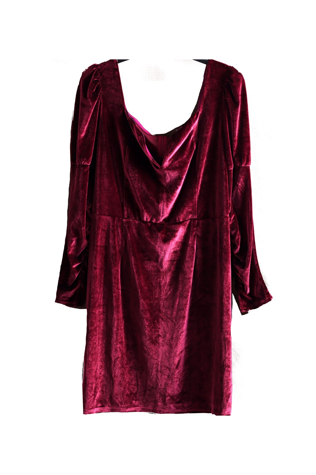 Dámské bordó sametové elastické šaty / PRETTY DARLING / XXXL (48/50) na štítku uk 22 / ANGLIE
