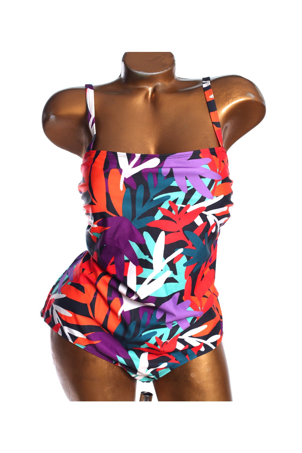 Dámské černé jednodílné plavky s barevnými vzory / Tu / XXXL (46) / UK 18 /ANGLIE