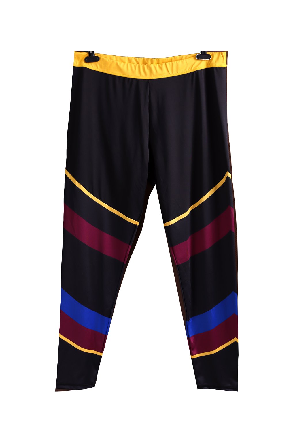 Dámské černé legíny s žluto-modro-gialovými pruhy / South beach / XXXXL (54) / UK (26) /ANGLIE