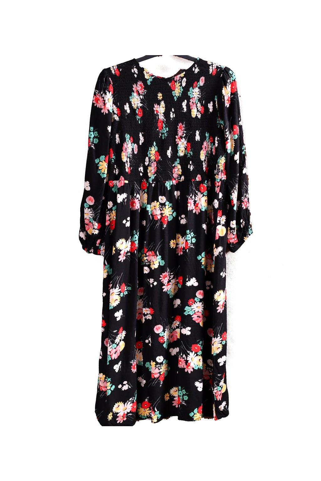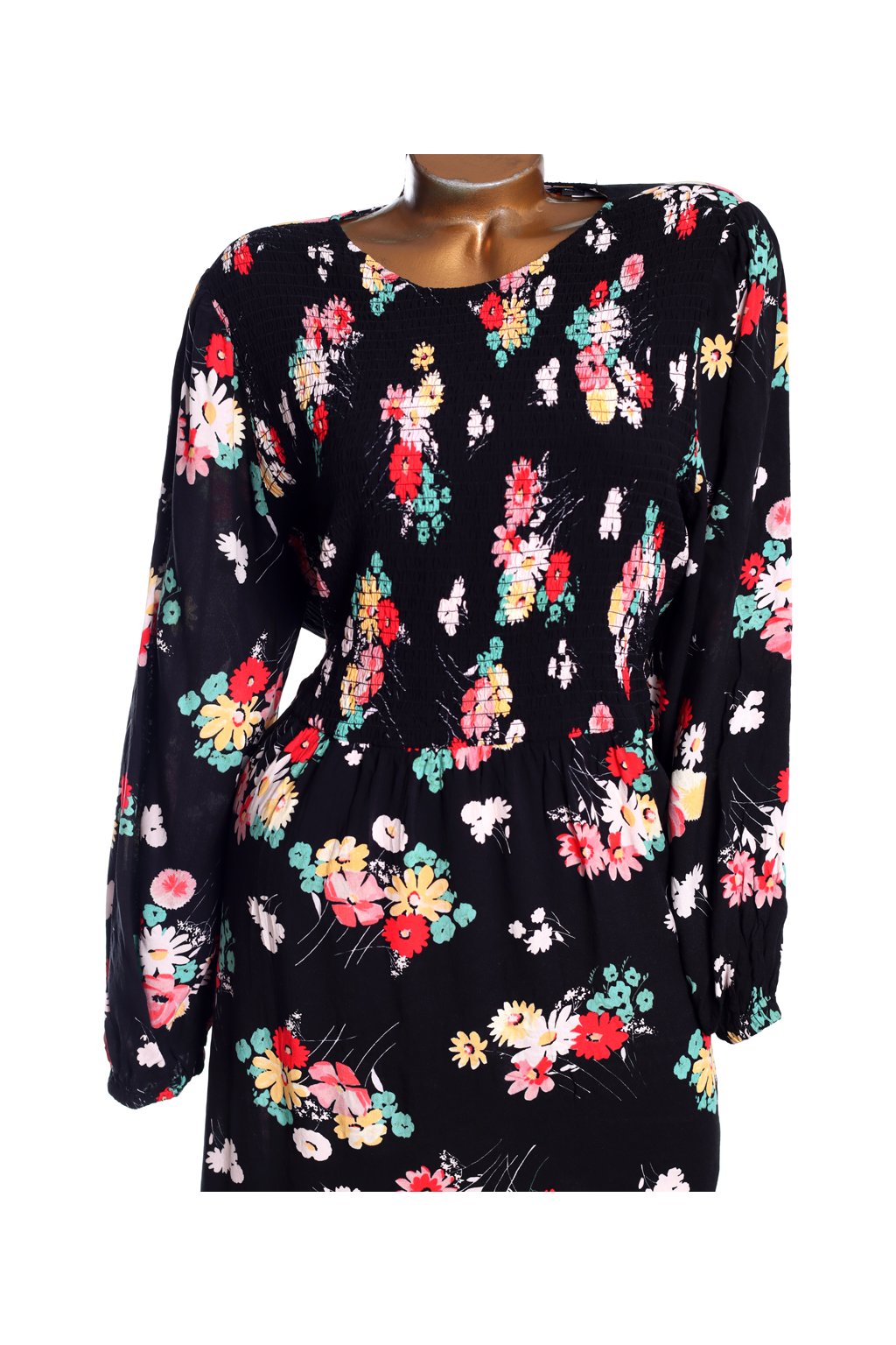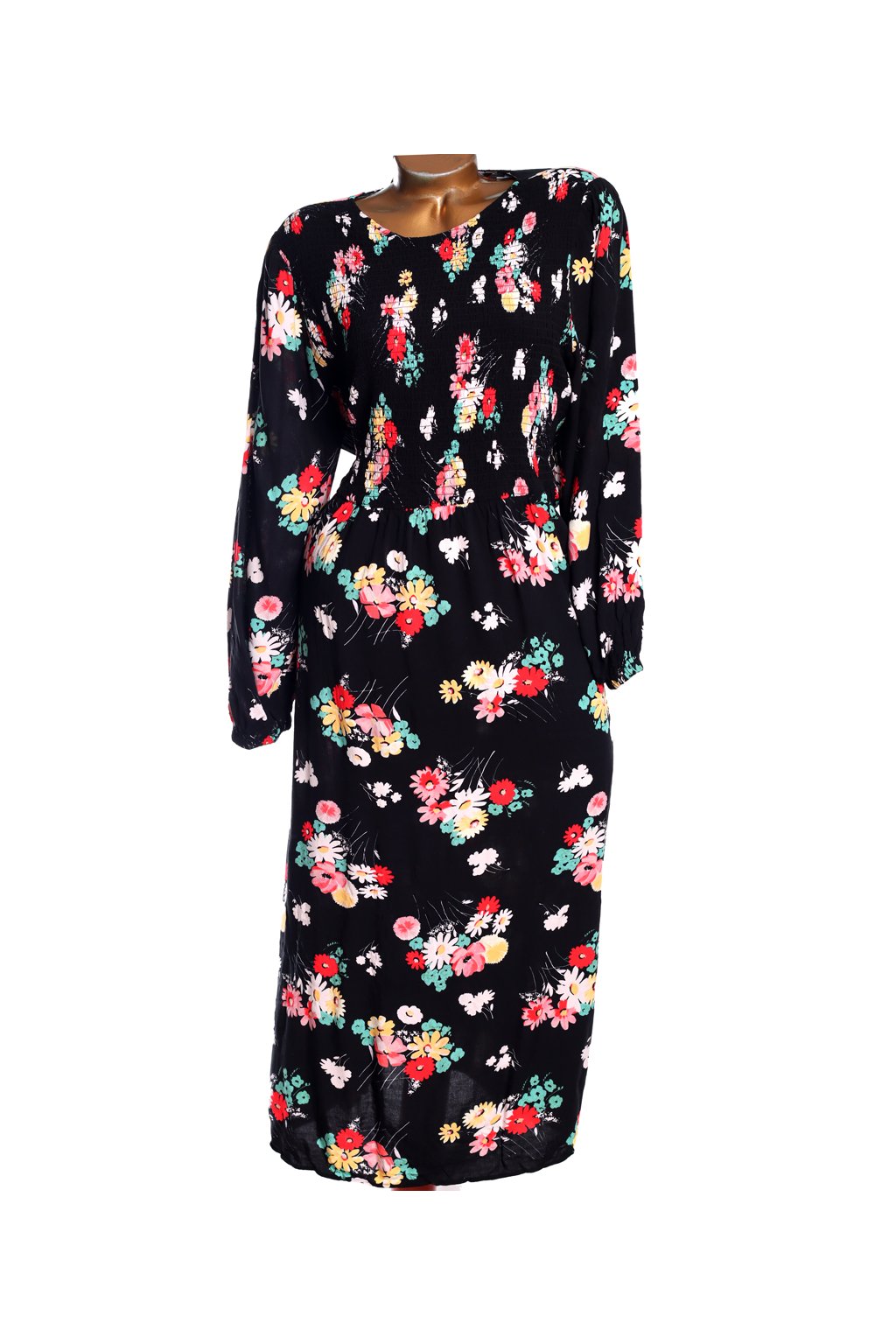 Dámské černé šaty s žluto-růžovo-červeno-bílo-zelenými kytičkami / NEW LOOK / XXXL (50) / UK 22 / ANGLIE