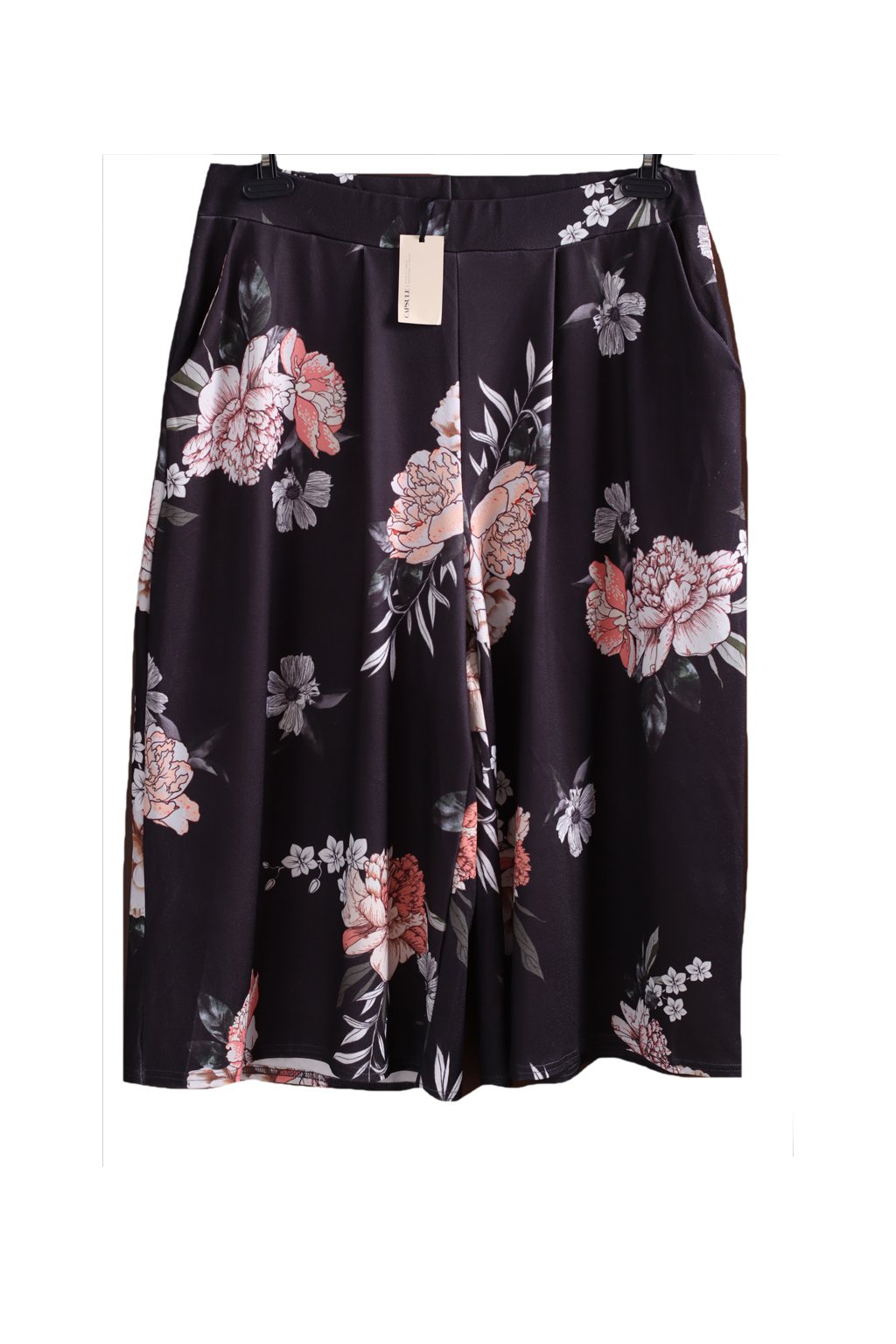 Dámské černé 3/4 kalhoty s květy / CAPSULE / (46/48) / UK 18-20 / ANGLIE