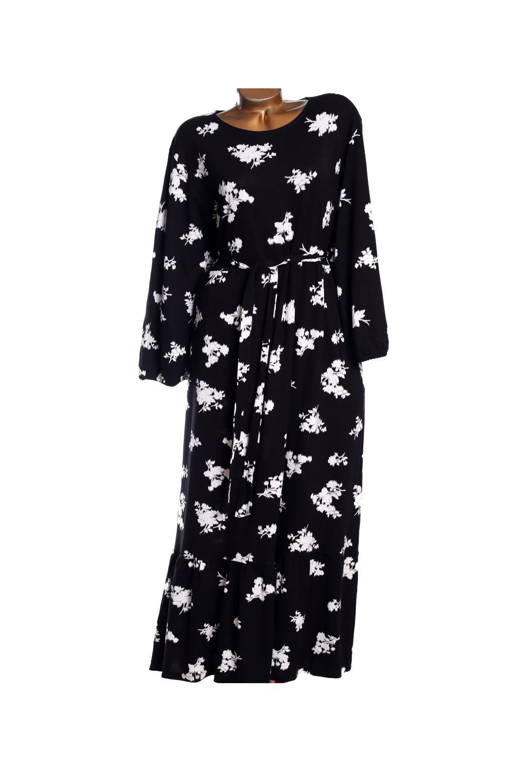 Dámské černé elastické šaty s bílými květy/ YOURS / XXXL (50) / ANGLIE (22)