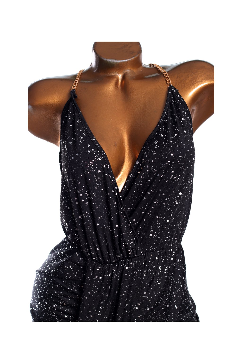 Dámské černé elastické šaty se stříbrnými puntíky / EARO / (48/50/52) / UK 20-22-24 / ANGLIE