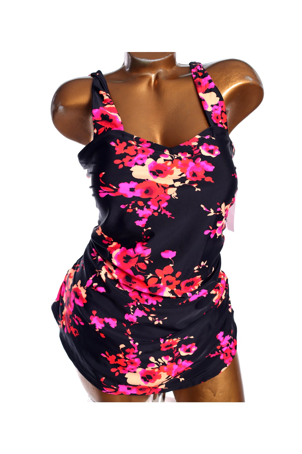 Dámské černé jednodílné plavky s barevným květovaným vzorem / Meet Curve / XXXL (48) / UK 20 / ANGLIE