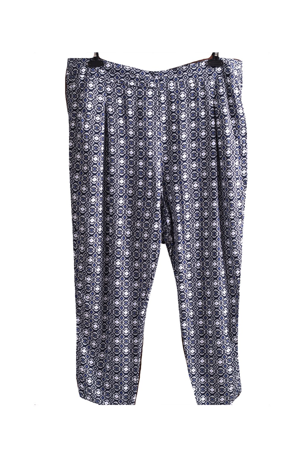 Dámské černé 3/4 kalhoty s bílo-modrými vzory / M&S / XXXL (52) / UK 24 / ANGLIE
