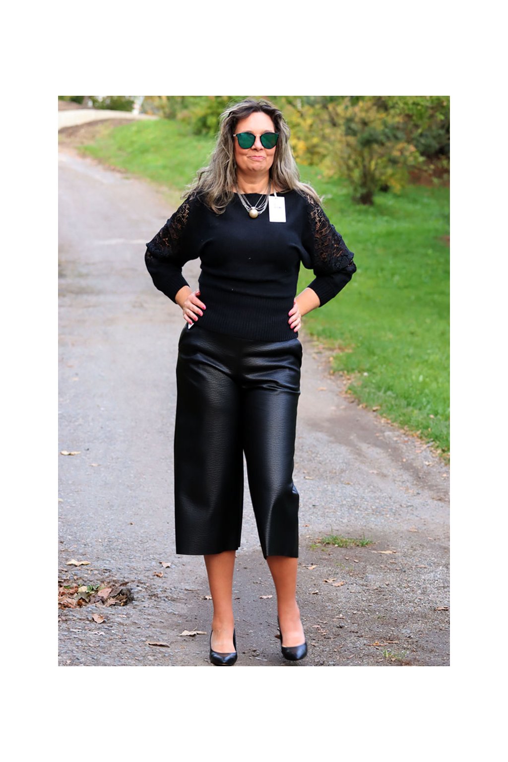 Dámské černé koženkové kalhoty / DOYA FASHION / S/M/K (36/38/40/42) pas 70 do 90 cm / MODA ITALY