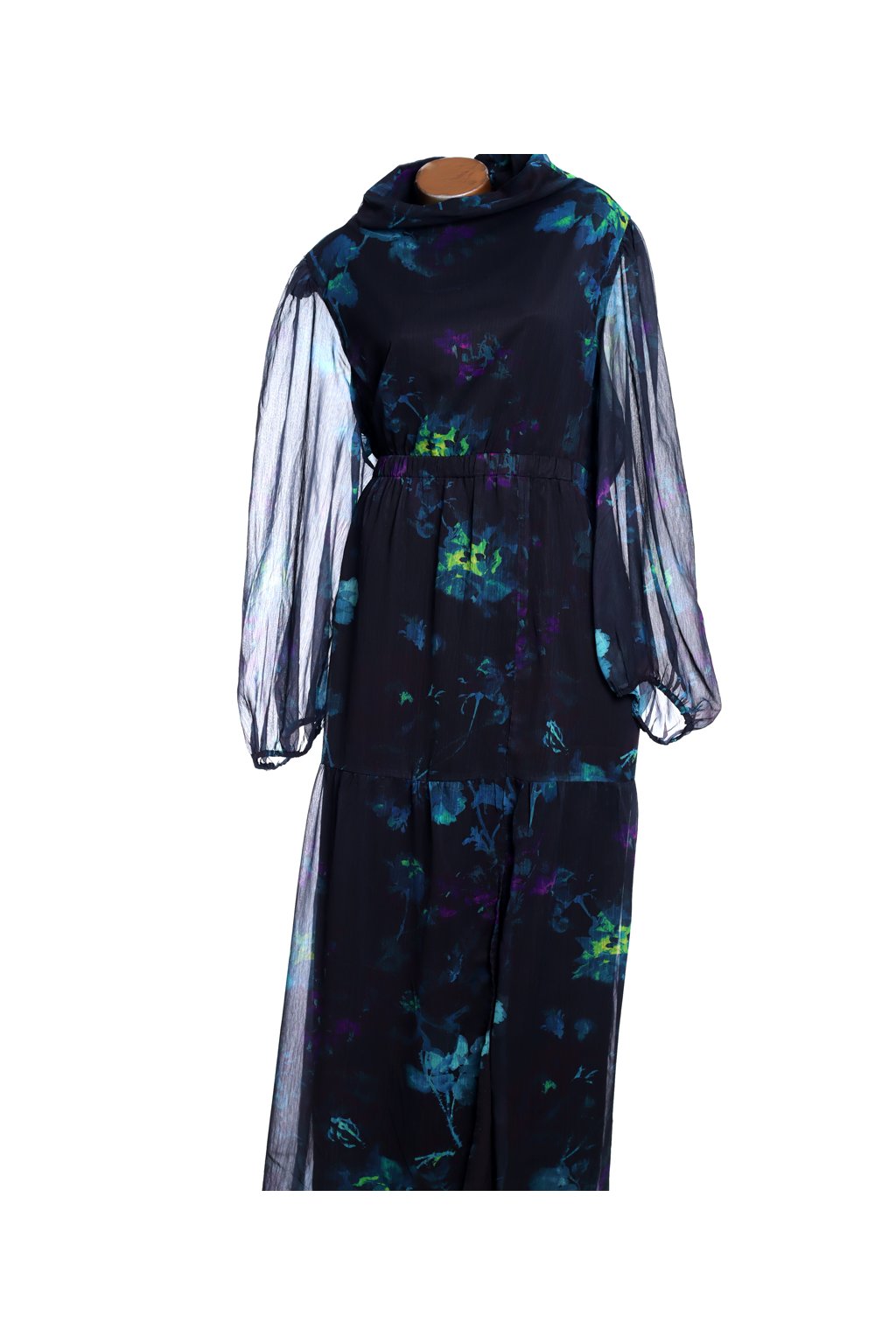 Dámské černé luxusní šaty s modro-zelenými květy / HOPE & IVY / (56) / UK 28 / ANGLIE