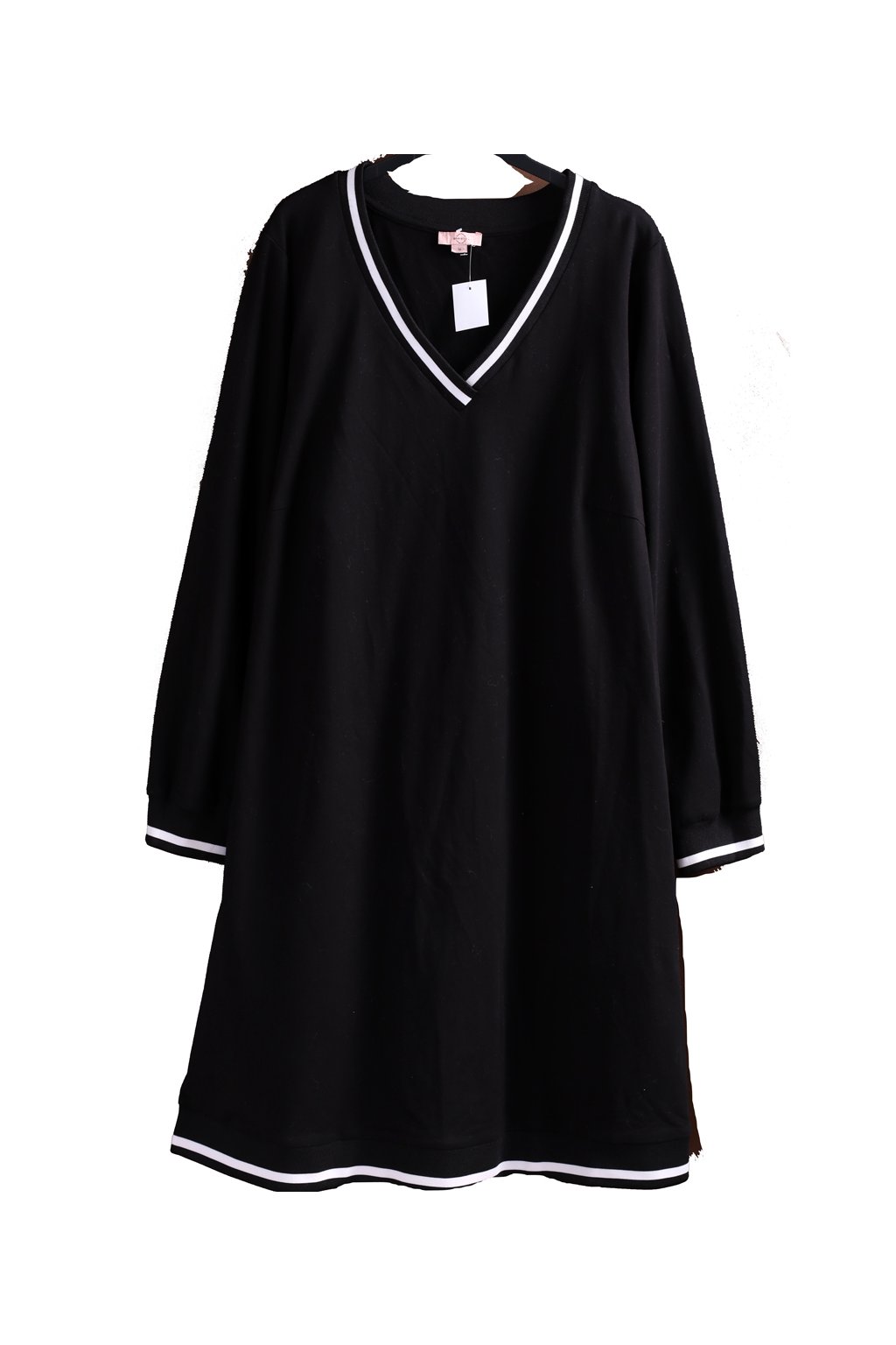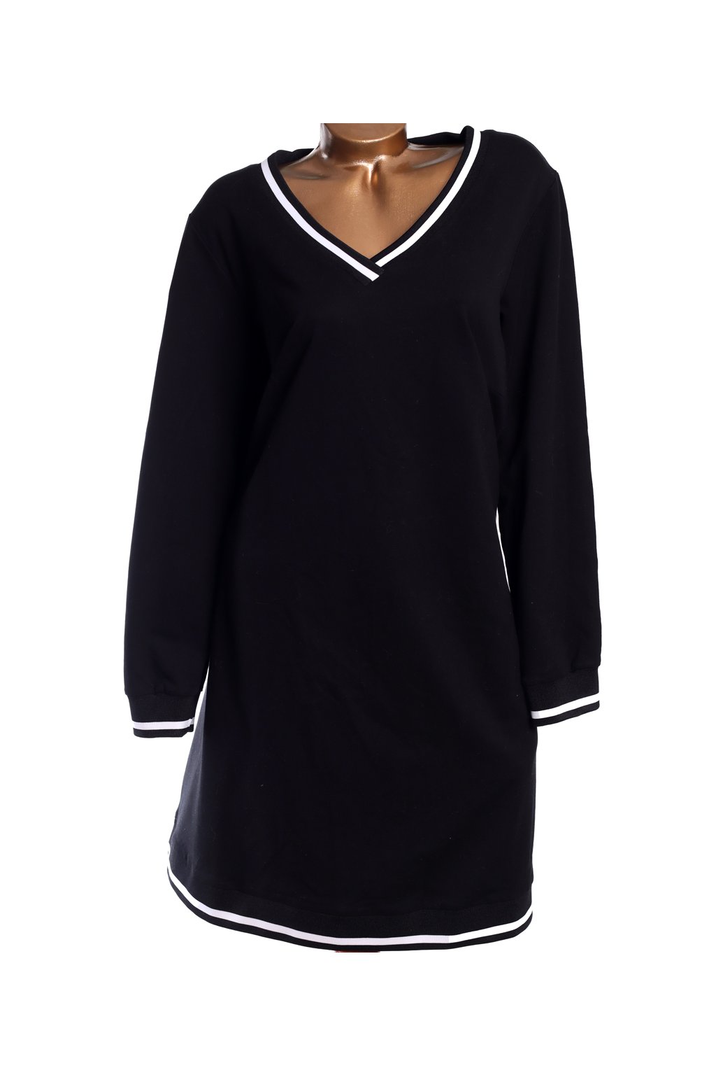 Dámské černé mikinové šaty s bílými pruhy a výstřihem do V / ANNALISA / XXXL (50/52) / UK 22 / ANGLIE