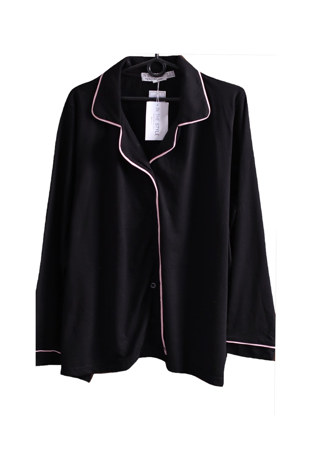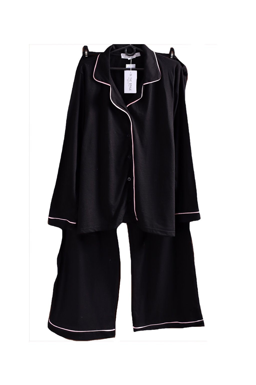Dámské černé pyžamo s růžovými pruhy / TIN THE STYLE / XXXL (52/54) / UK 24/26 / ANGLIE