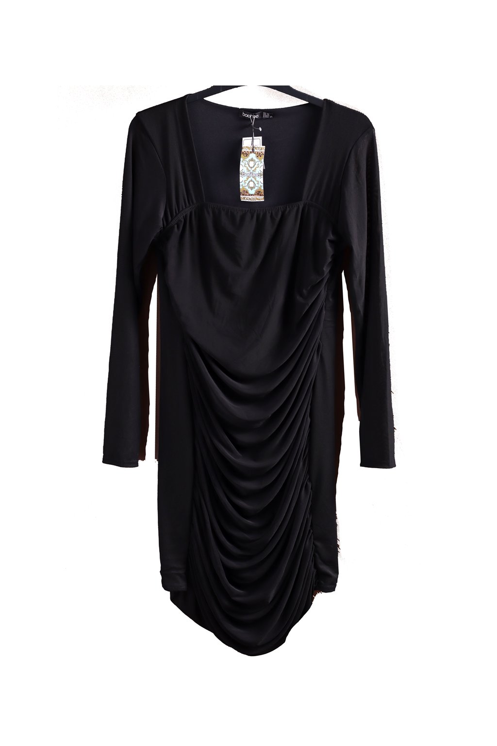 Dámské černé řasené šaty / BOOHOO / (46/) / UK 18 / ANGLIE
