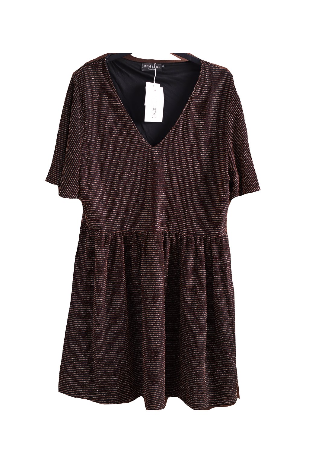 Dámské černé šaty měděnými třpytivými pruhy / IN TH STYLE / XXL (48) / UK 20 / ANGLIE