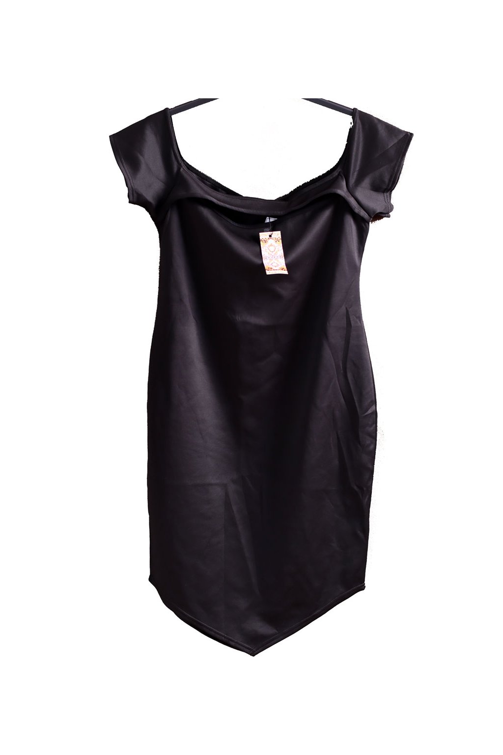 Dámské černé, elastické šaty s ozdobně střiženým dekoltem / BOOHOO / XXL (46) / UK 18 / ANGLIE