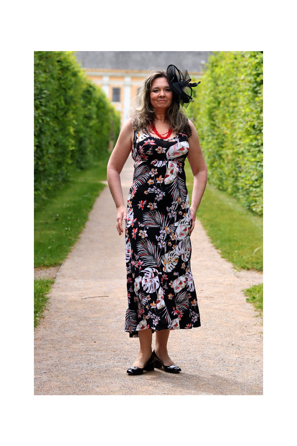 Dámské černé šaty s barevným exotickým motivem / PRINCIPLES / XXXL (50) / UK 22 / ANGLIE