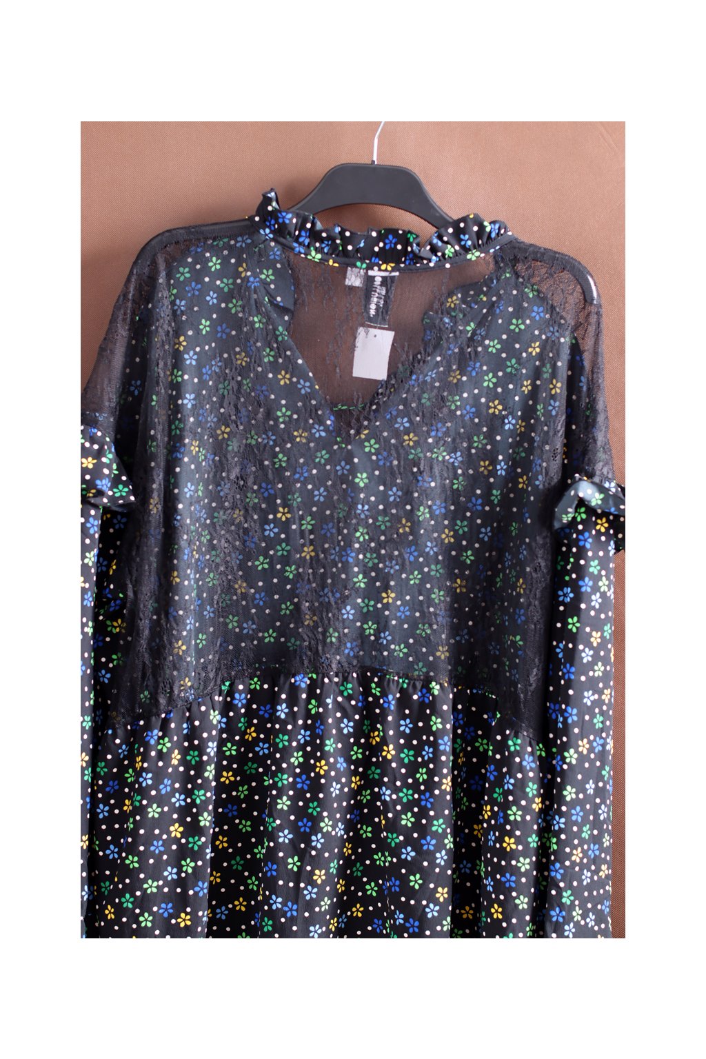 Dámské černé šaty s barevným vzorem / Collusion / XXXXL (52) / ANGLIE