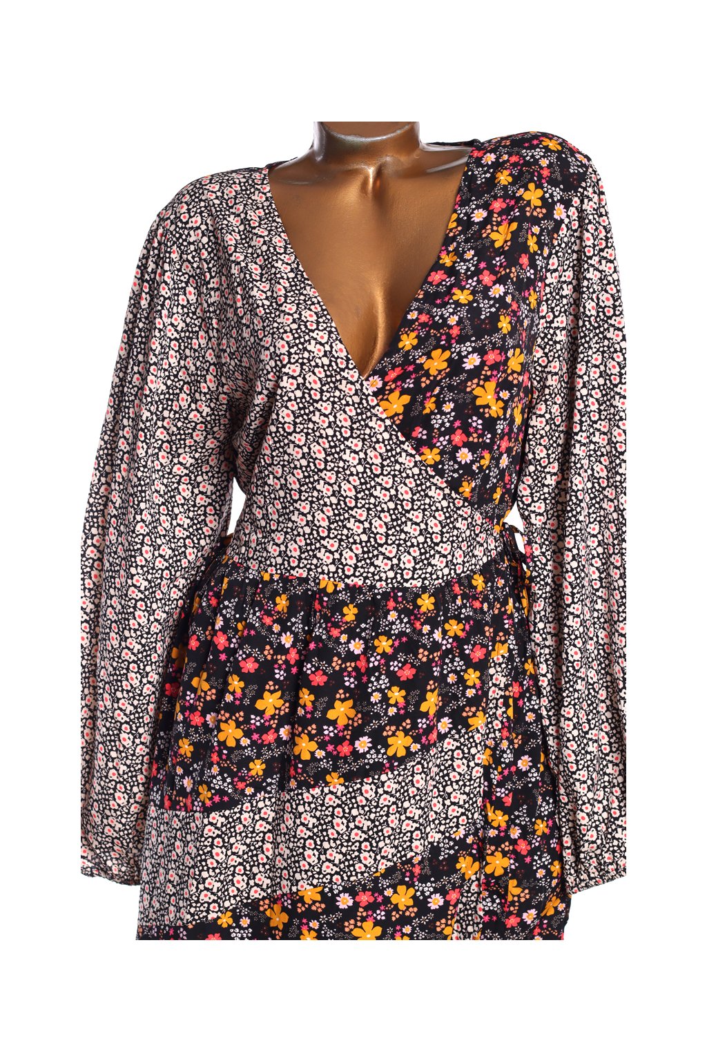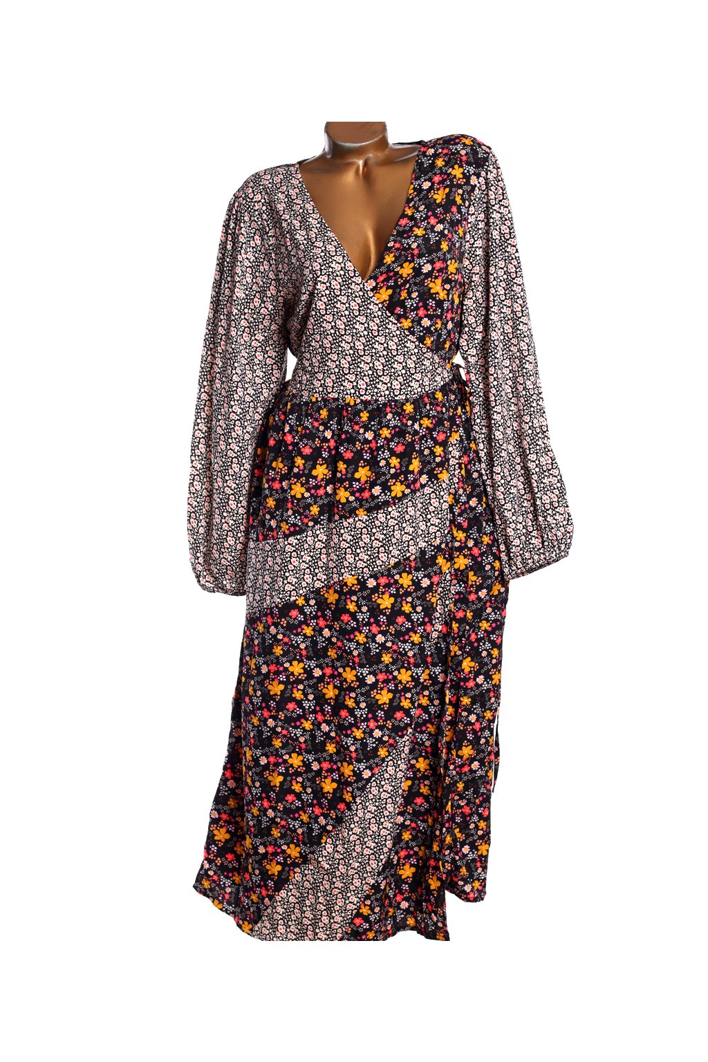 Dámské černé šaty s barevnými květy / BOOHOO / XXL (48) / UK 20 / ANGLIE