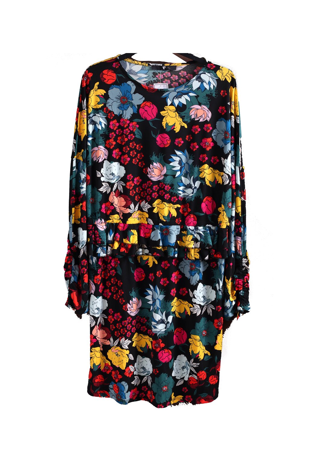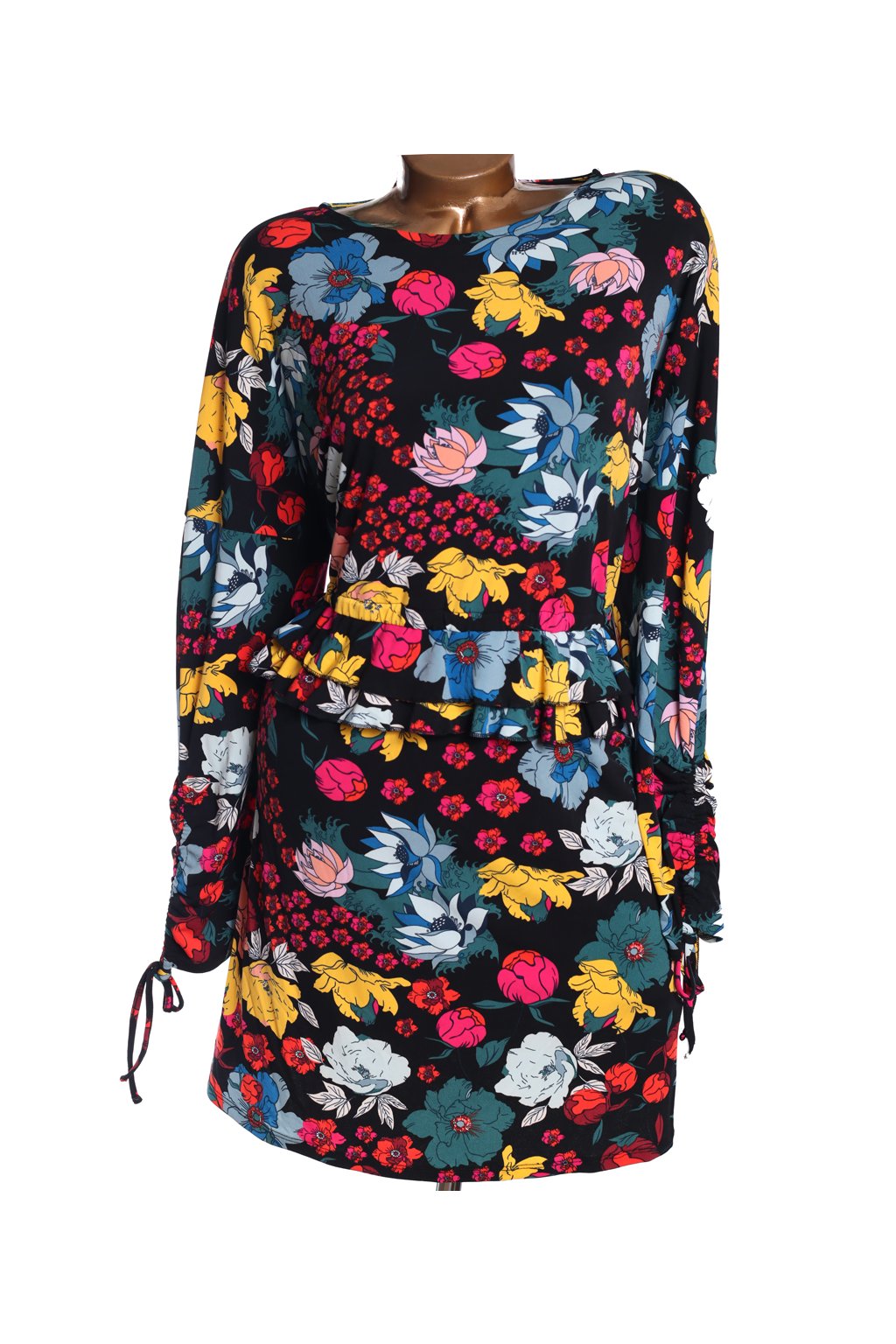 Dámské černé šaty s barevnými květy / BY VERY / XXL (46) / UK 18 / / ANGLIE