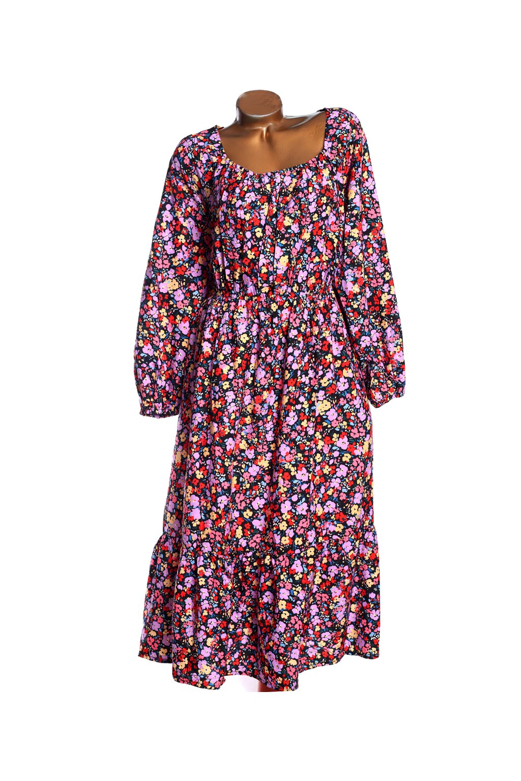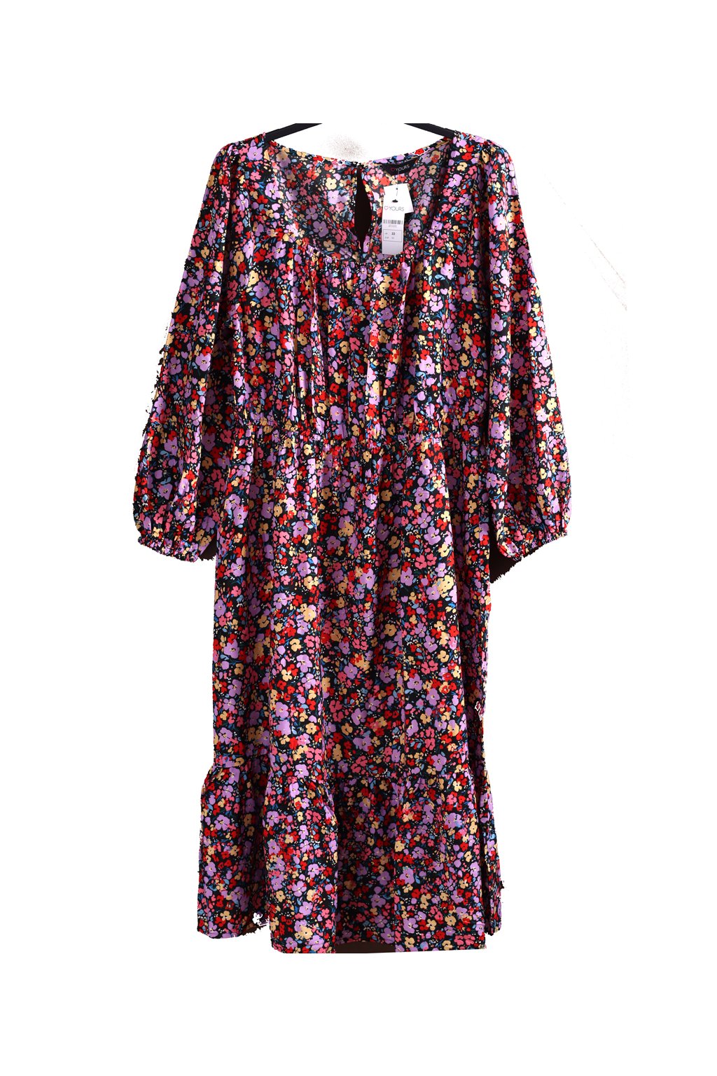 Dámské černé lehké šaty s barevnými květy / YOURS / XXXL (50) / UK 22 / ANGLIE