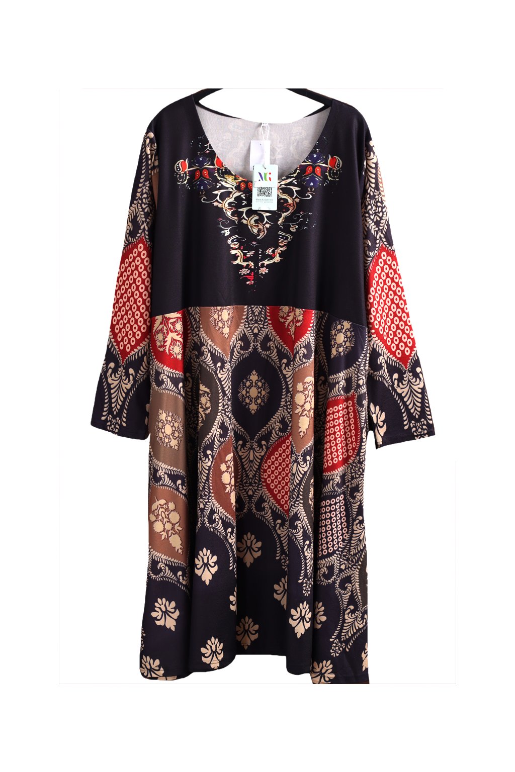 Dámské černé šaty s barevnými vzory/ MARIA GABRIELE / XXXXL (52/54) / UK 26 / ANGLIE