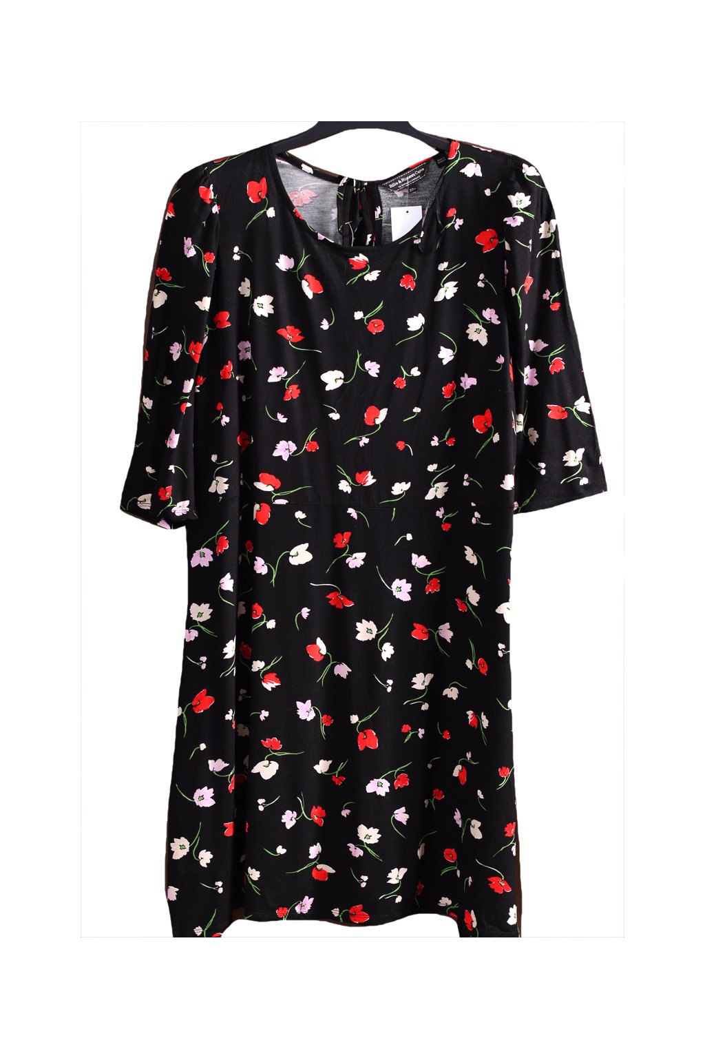Dámské černé šaty s bílo-červeno-fialovými květy / DOROTHY PERKINS / XXXL (50) / UK 22 / ANGLIE
