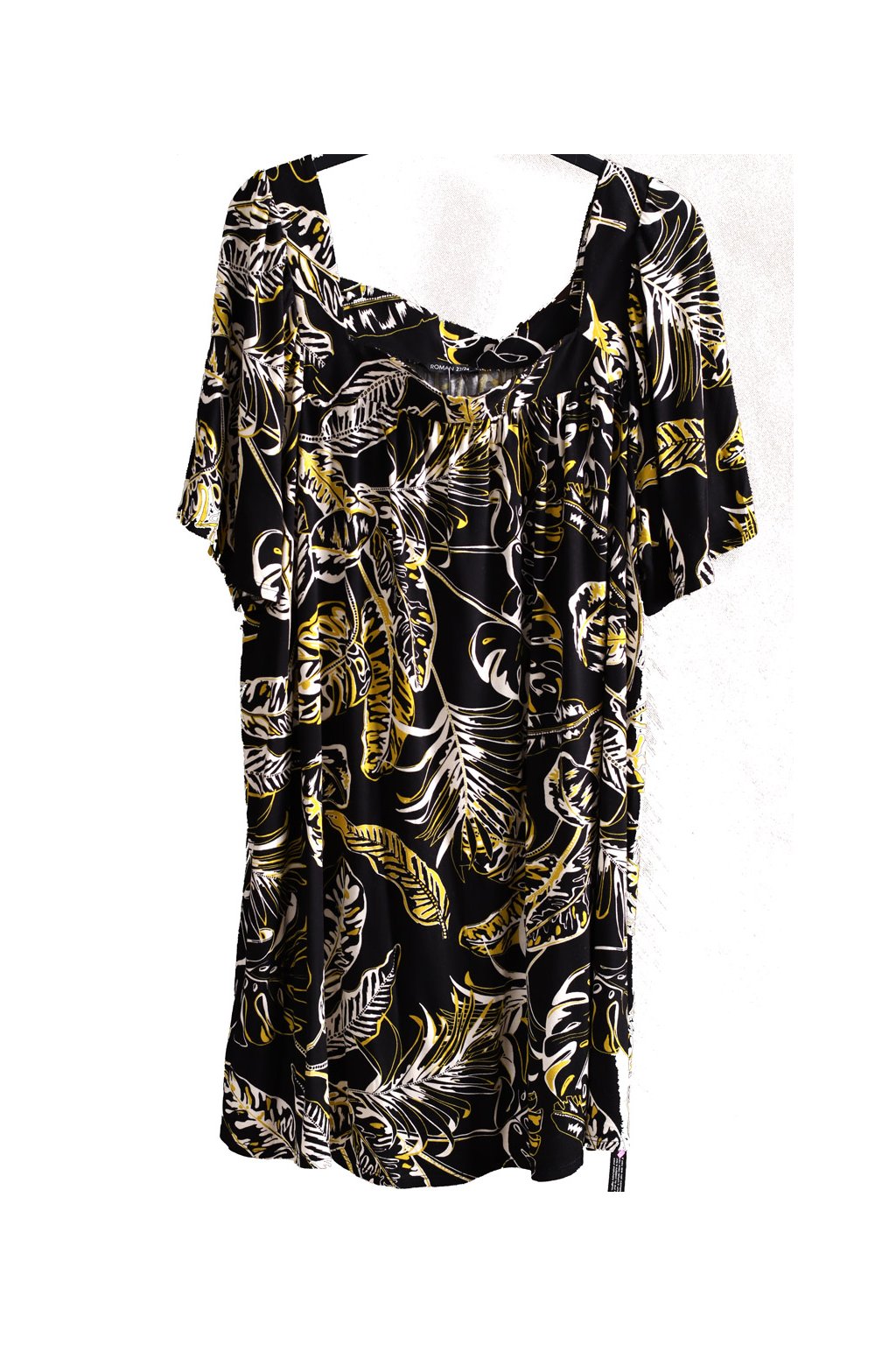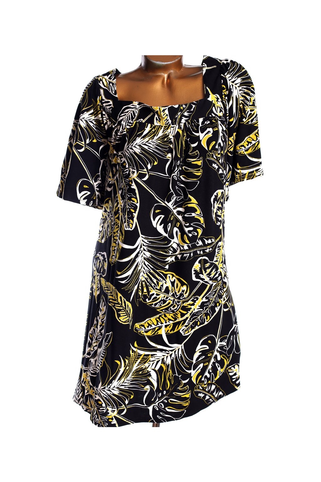 Dámské černé šaty s bílo-zelenými listy / ROMAN / XXXXL (5052) / UK 22/24 / ANGLIE