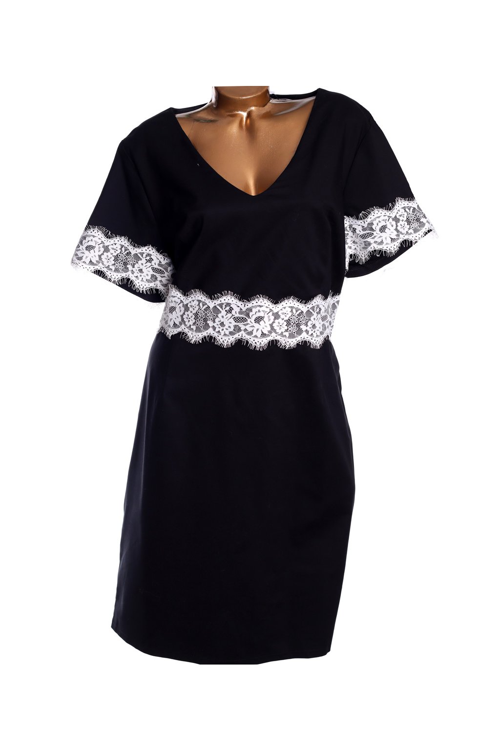 Dámské černé šaty s bílou krajkou / PAPER DOLLS / XXXXL (52) / UK 24 / ANGLIE