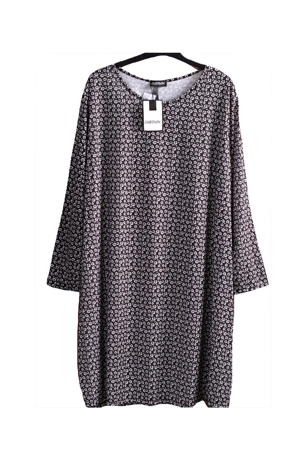 Dámské černé šaty s bílými květy / CURVEWOW / XXXXL (58/60) / UK 30/32 / ANGLIE