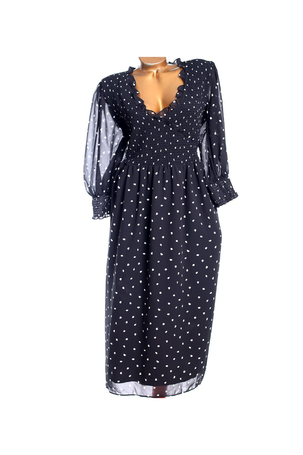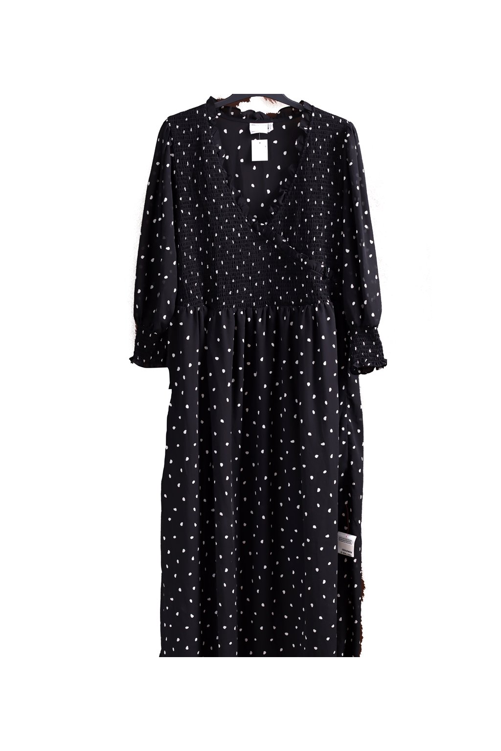 Dámské černé šaty s bílými puntíky a elastickým žebrováním na prsou / ASOS / XXXL (48) / UK 20 / ANGLIE