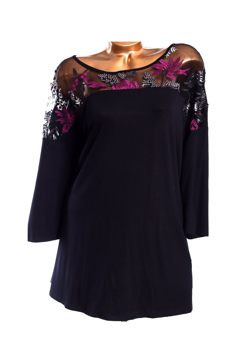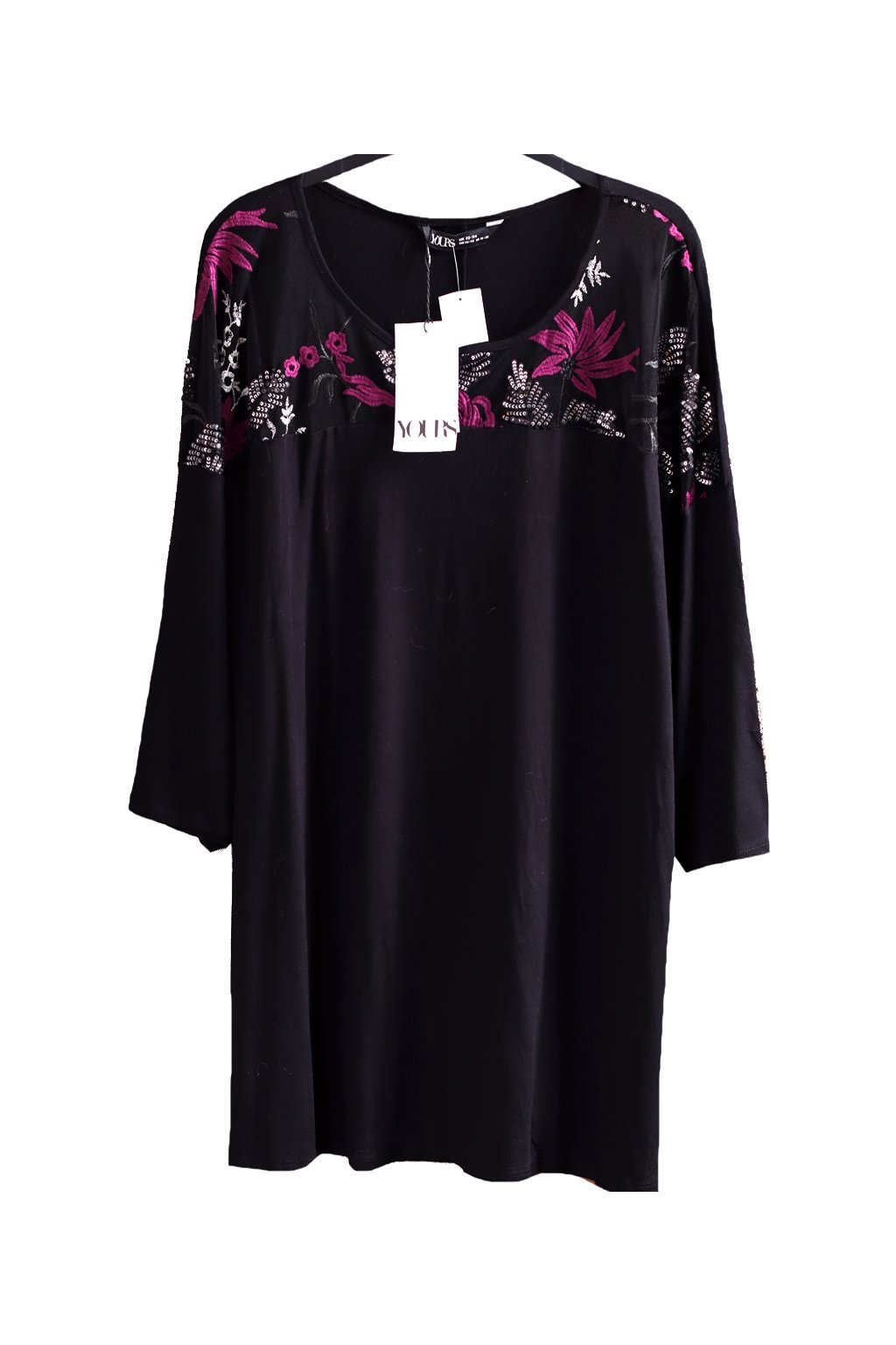 Dámské černé šaty/delší halenka s fialovými a flitrovými květy / YOURS / XXXXL (50/52/54) / UK 22/24 / ANGLIE