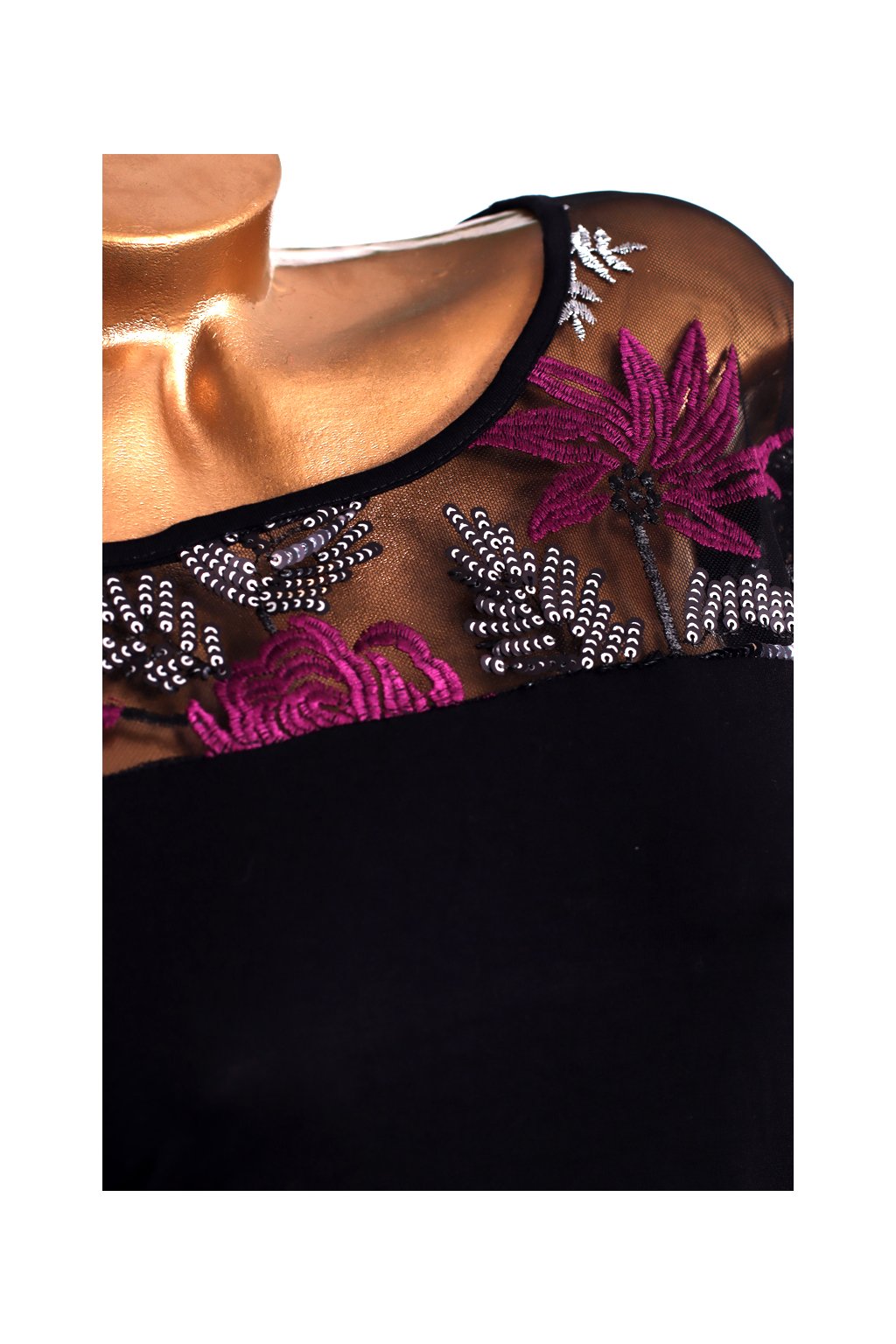 Dámské černé šaty s fialovými a flitrovými květy / YOURS / XXXXL (50/52) / UK 22/24 / ANGLIE