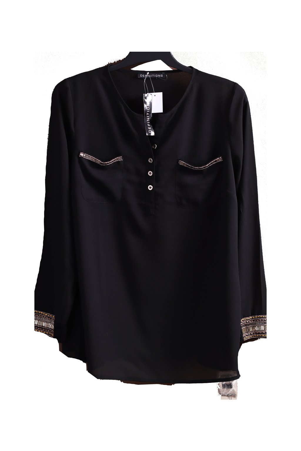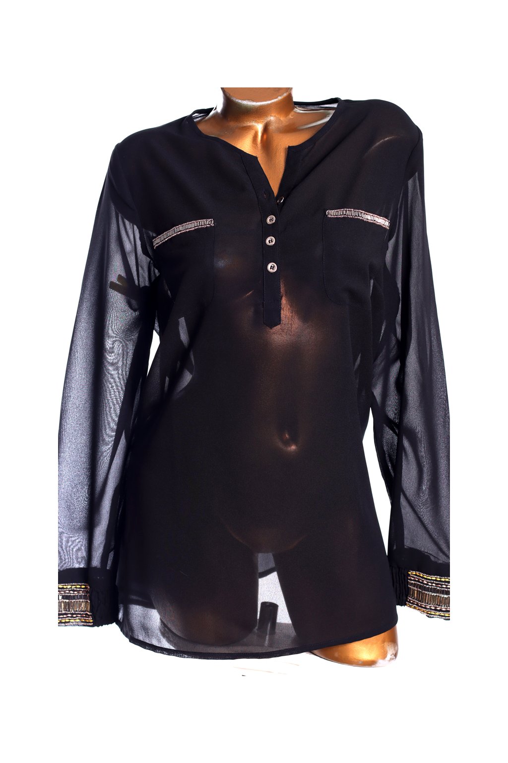 Dámská černé halenka s korálky / Definitions / XXL (46) / UK 18 / ANGLIE